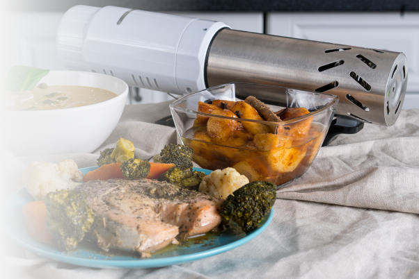 Метод «включи и забудь» позволяет загружать продукты и заниматься другими делами. Блюда можно готовить заранее и хранить в вакуумных пакетах.