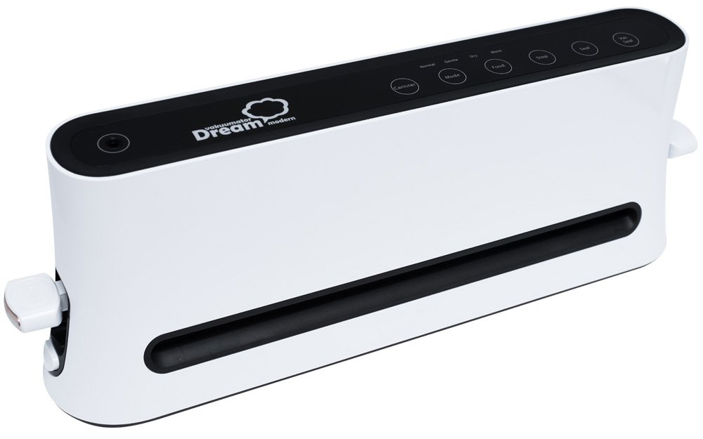 Dream Modern от RAWMID выделяется на фоне конкурентов компактными размерами – на столе он будет занимать гораздо меньше места. Отличает его также сенсорная панель управления, которая делает вакууматор стильным украшением Вашей кухни. Кроме того, у данного аппарата самая симпатичная комплектация: пакеты, плёнка, шланг для контейнеров и бутылок, плюс оригинальные наклейки для украшения внешнего вида устройства. Как бюджетную модель для несложных задач мы рекомендуем именно её.