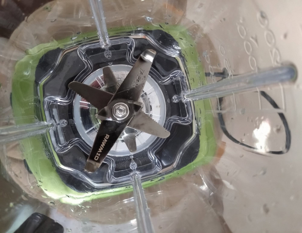 Объёмный нож блендера RawMiD BDG-03 изготовлен из высококачественной японской нержавеющей стали. Его форма оптимизирована для приготовления смузи и коктейлей. Широкие лопасти обеспечивают максимальный охват продуктов в чаше, а два маленьких лезвия, загнутых вверх, эффективно измельчают крупные кусочки фруктов и овощей.