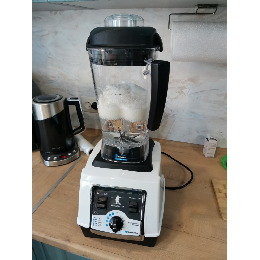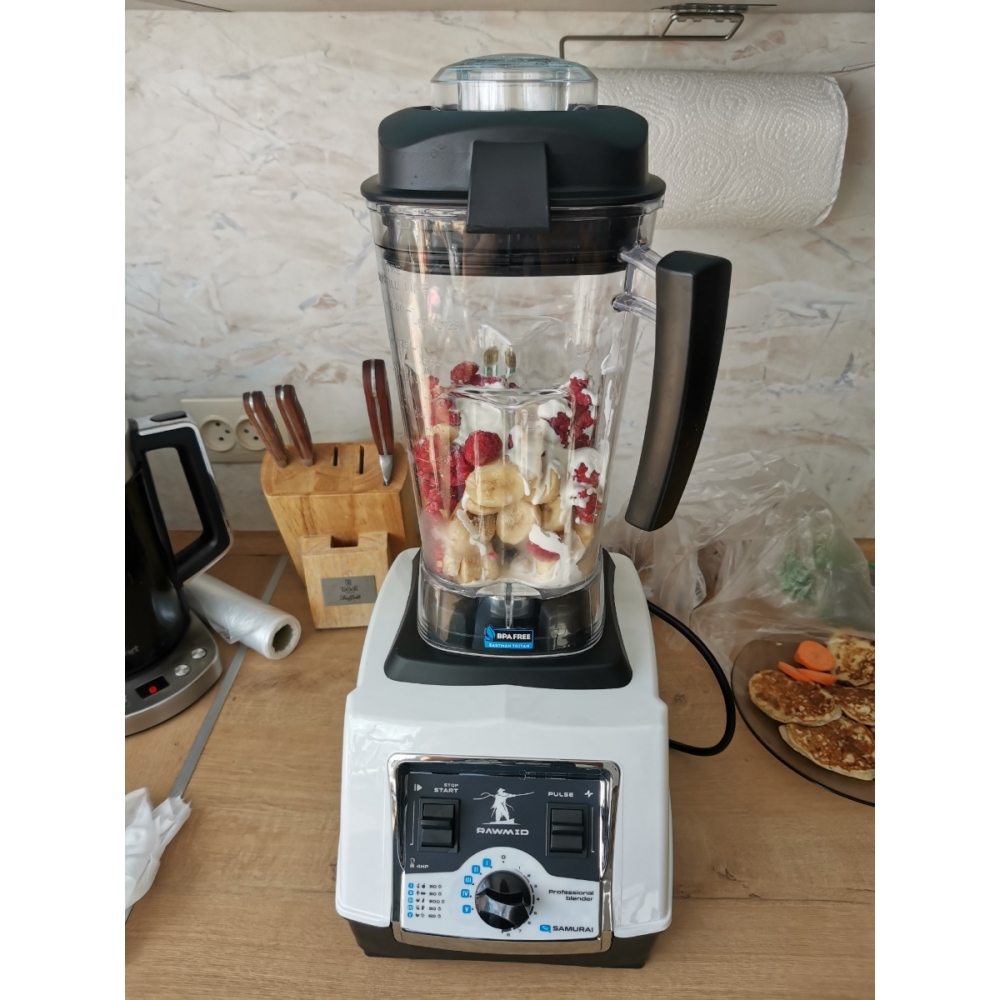 RAWMID Dream Samurai BDS-04 – это высокоскоростной профессиональный блендер для бытового и коммерческого использования. С его помощью Вы сможете приготовить бархатистые смузи идеально однородной консистенции, нежные кремовые супы, ореховые пасты, сорбеты из замороженных ягод и фруктов и много других вкусных полезных блюд.