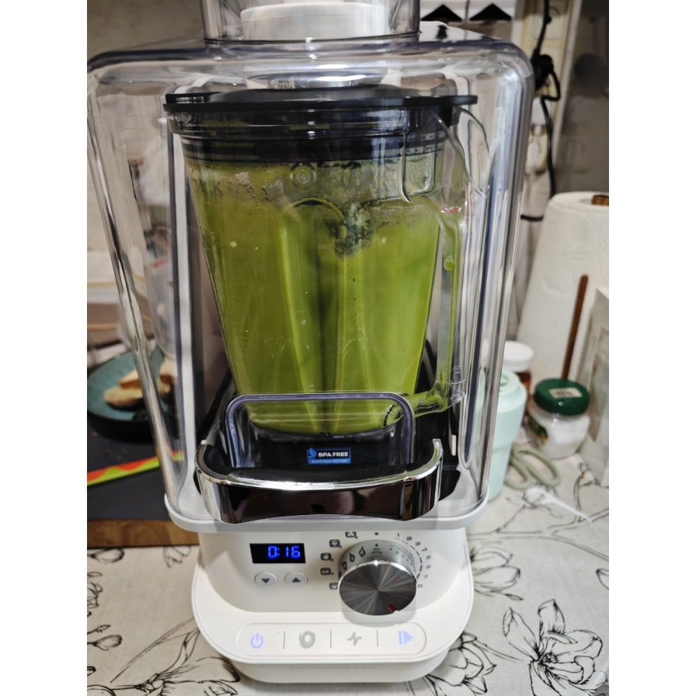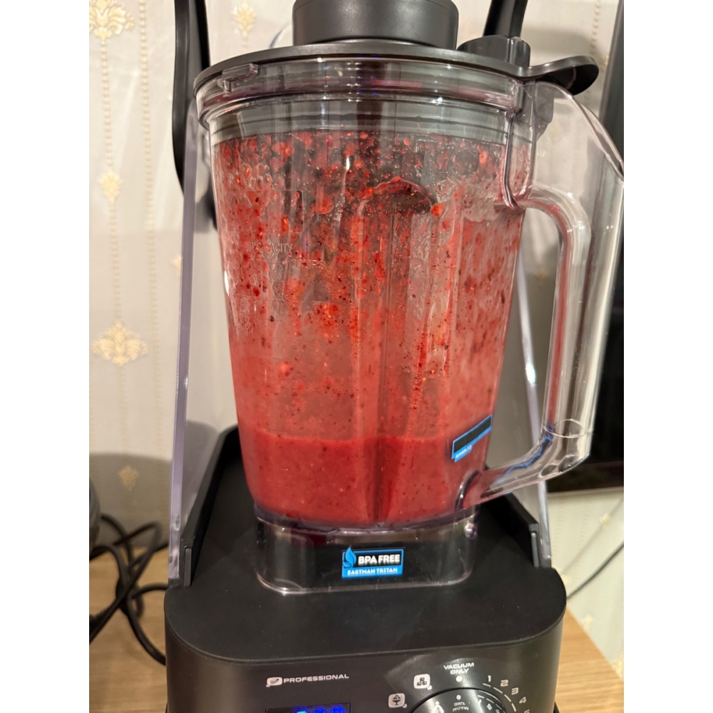 Встроенный вакууматор откачивает воздух из чаши, создавая мощное разрежение воздуха 75 кПа. В вакууме продукты меньше подвержены окислению и в них сохраняется больше полезных веществ во время измельчения фруктов, ягод, зелени и овощей. Вакуумный режим идеально подойдёт для приготовления максимально полезных фруктово-ягодных смузи, овощных каш и крем-супов, основы для пастилы.