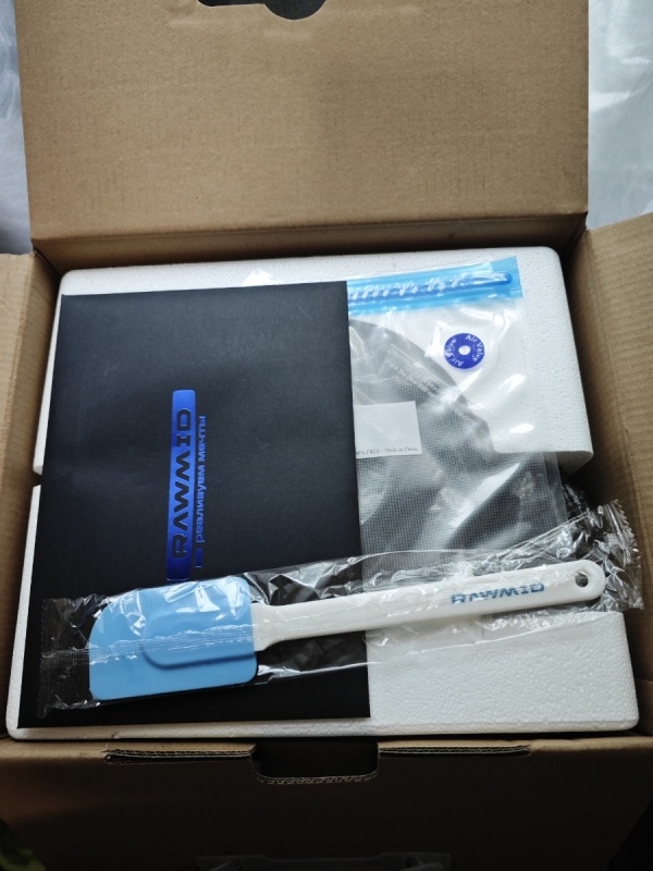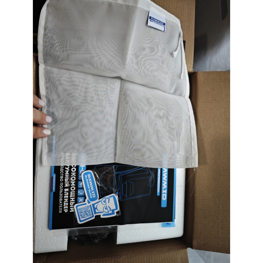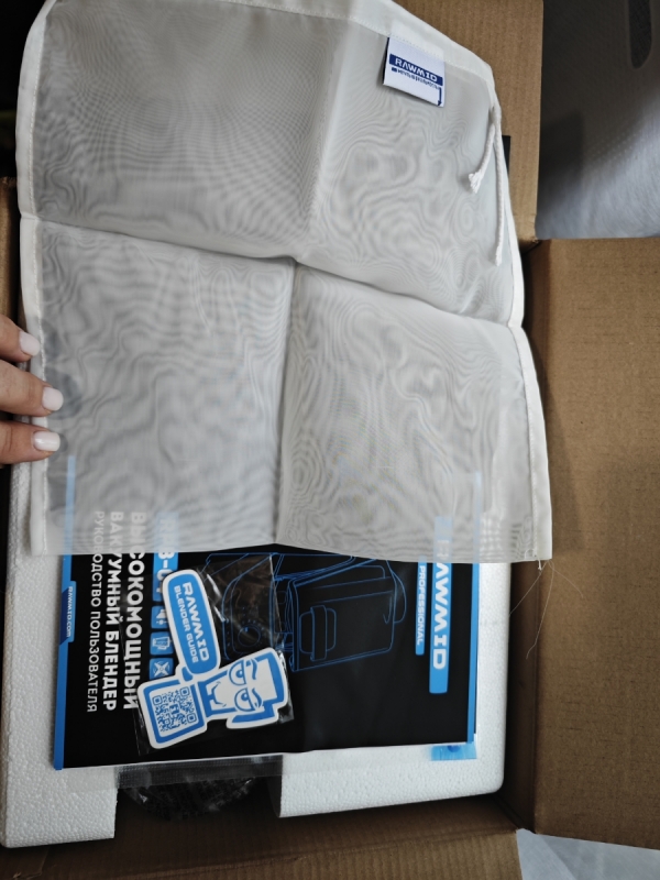 Блендер упакован в фирменную коробку RAWMID и дополнительно упакован в защитную транспортировочную коробку, которая защищает устройство от возможных повреждений во время доставки.