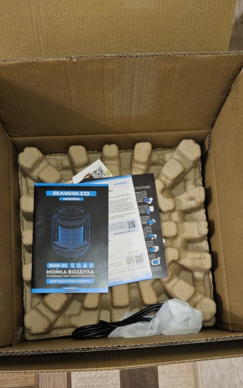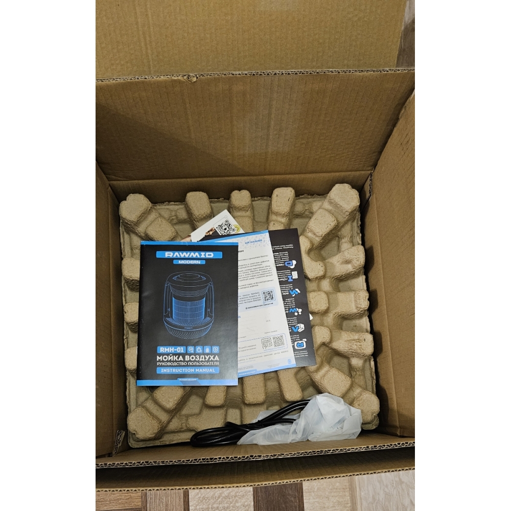 Увлажнитель воздуха RAWMID упакован в двойную коробку. Внутренняя — подарочная, с красивым фирменным дизайном. Внешняя — обеспечивает дополнительную защиту во время перевозки.