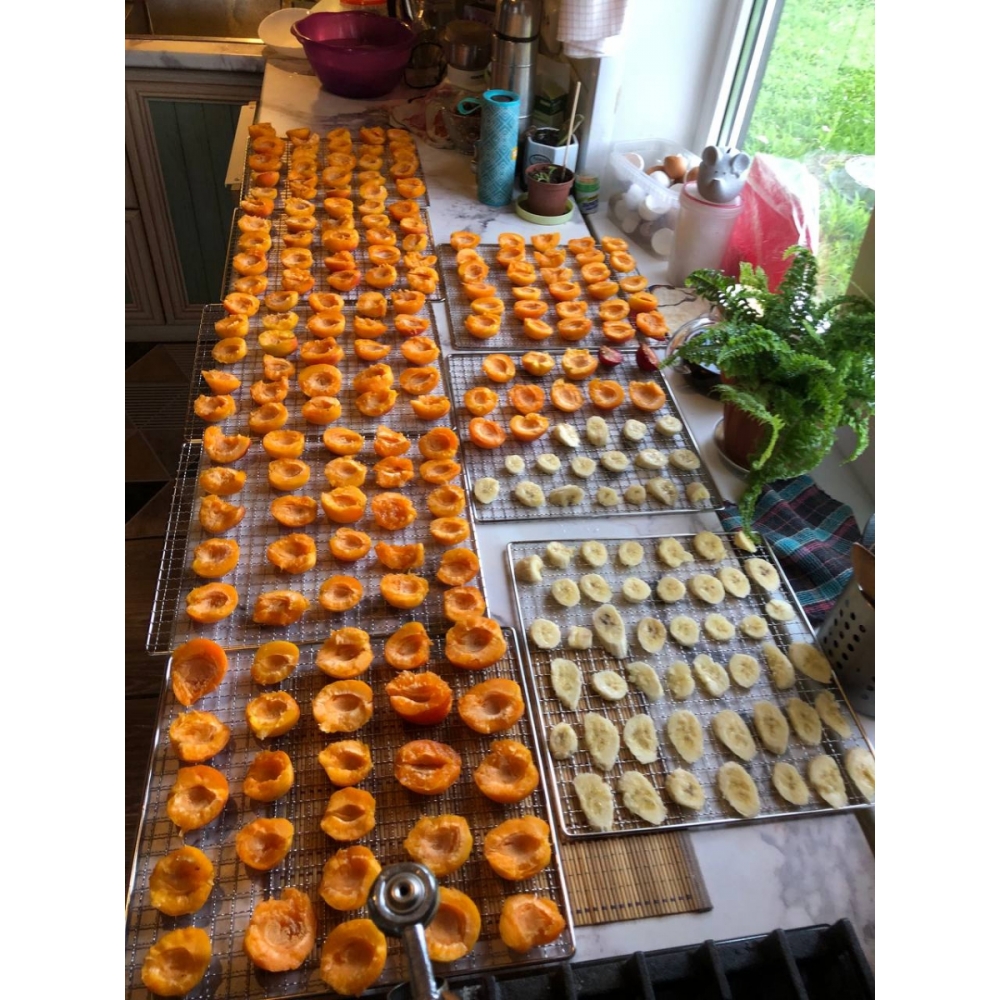 Благодаря тому, что лотки легко снимаются, можно комбинировать различные сочетания полок. Например, для сушки крупных цельных плодов, таких, как арбуз или тыква, в дегидраторе можно оставить одну полку. А для ферментации йогурта или квашения капусты в банках оптимально использовать две полки.