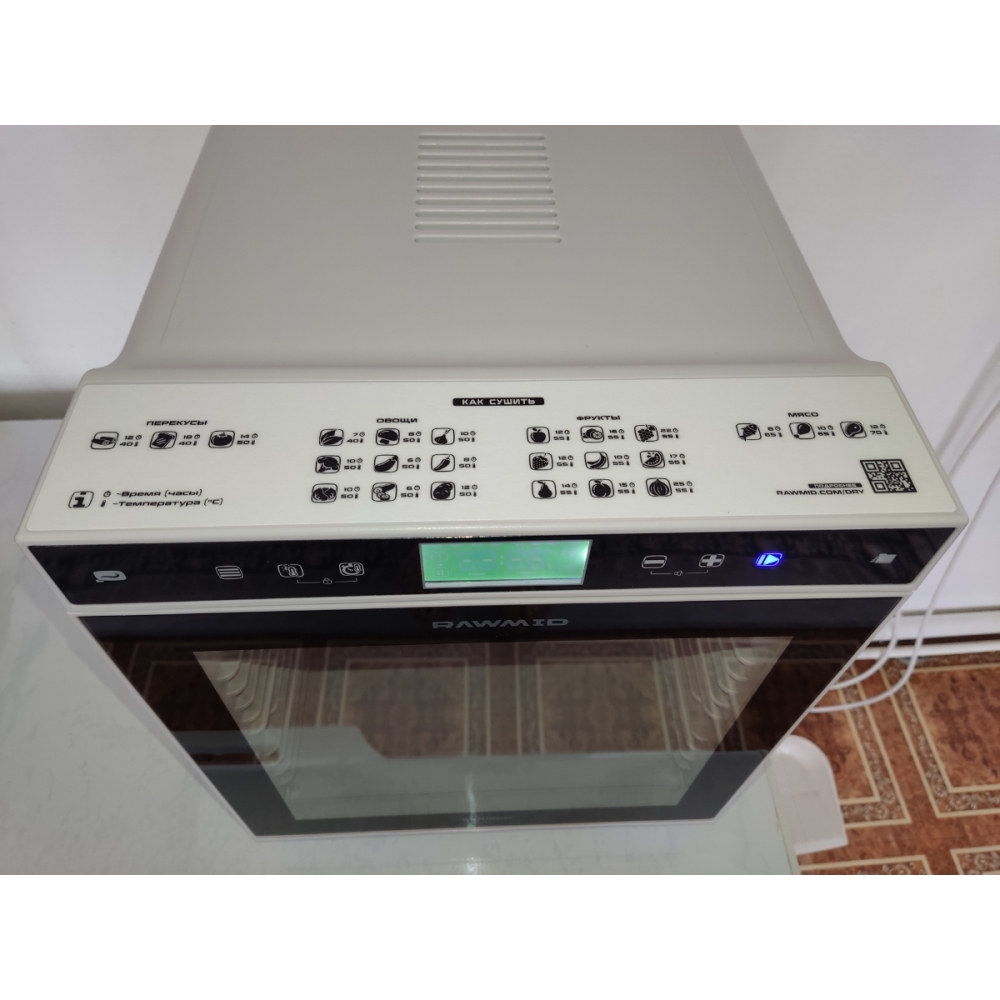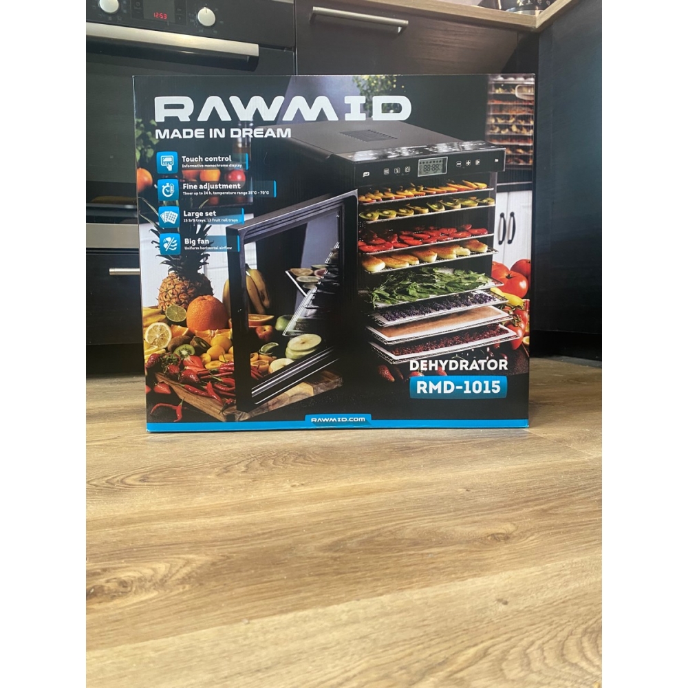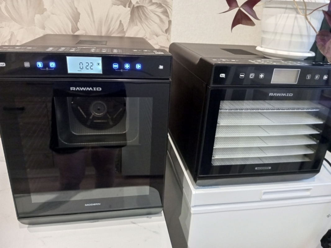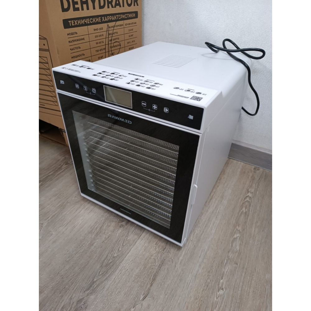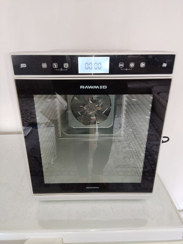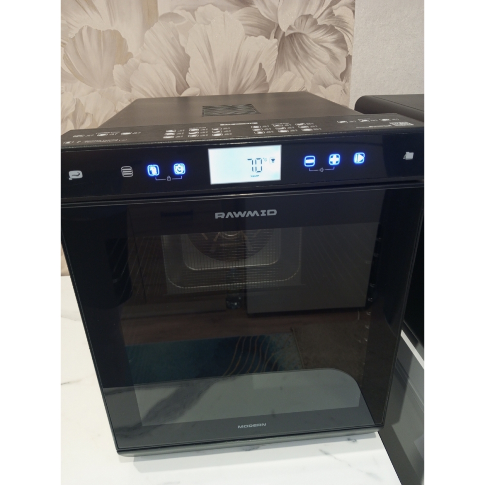 Дегидратор RAWMID Modern RMD-1015 оснащён 15 стальными лотками и 13 поддонами с бортиками для пастилы. Благодаря горизонтальному обдуву, продукты на всех лотках сушатся равномерно и их запахи не смешиваются между собой. Практичный дизайн позволяет сушить продукты любой формы и размера и удобно наблюдать за процессом сушки, а также не требует вмешательства для перестановки лотков.