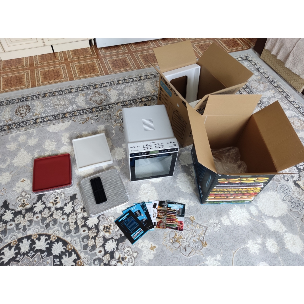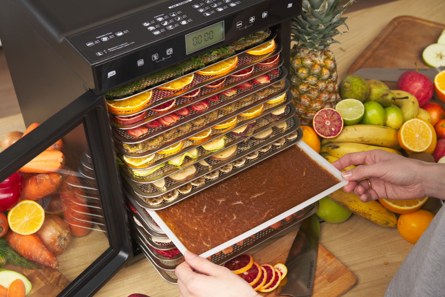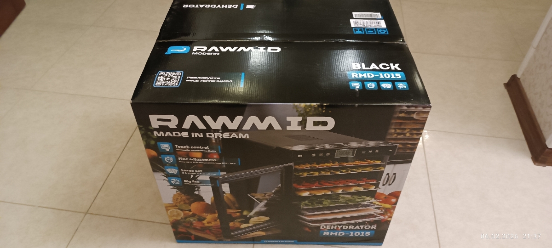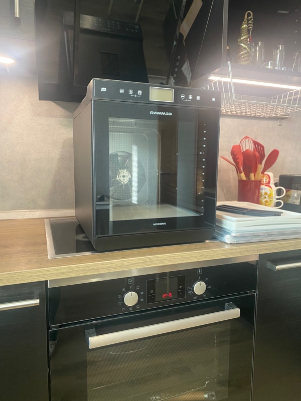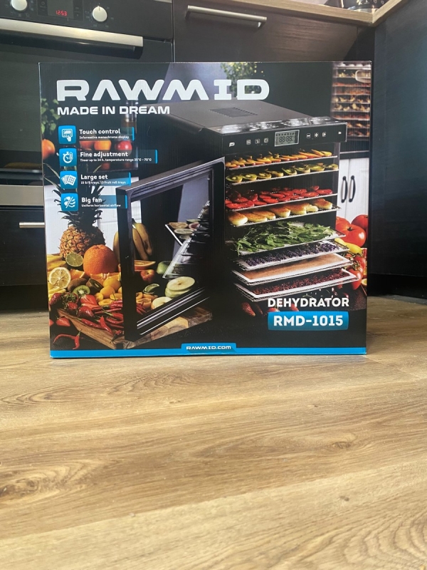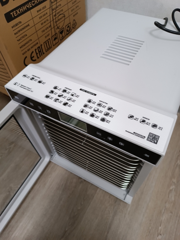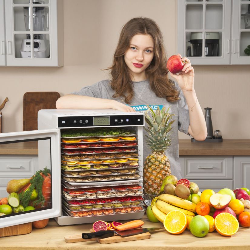 Дегидратор RAWMID Modern RMD-1015 оснащён 15 стальными лотками и 13 поддонами с бортиками для пастилы. Благодаря горизонтальному обдуву, продукты на всех лотках сушатся равномерно и их запахи не смешиваются между собой. Практичный дизайн позволяет сушить продукты любой формы и размера и удобно наблюдать за процессом сушки, а также не требует вмешательства для перестановки лотков.