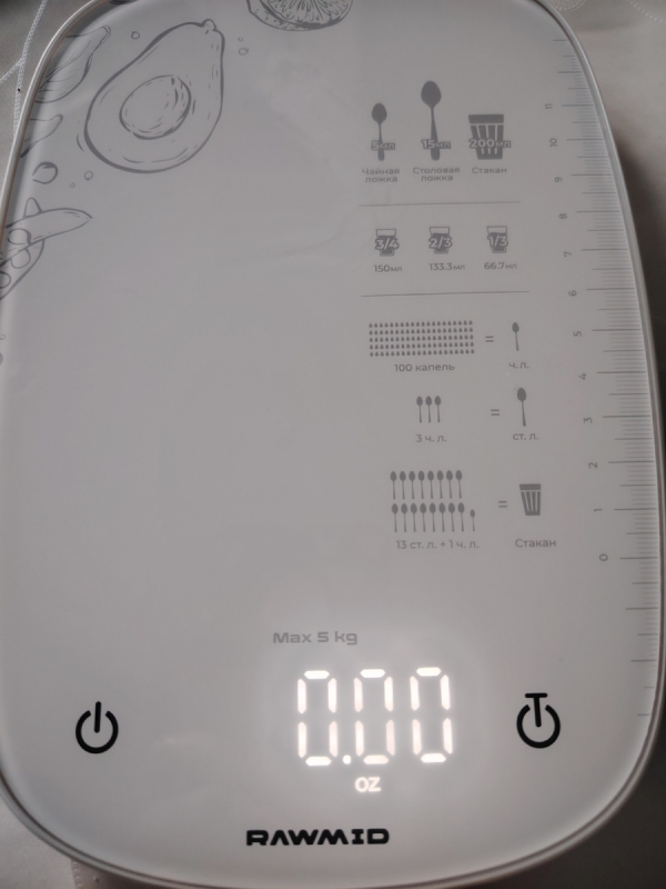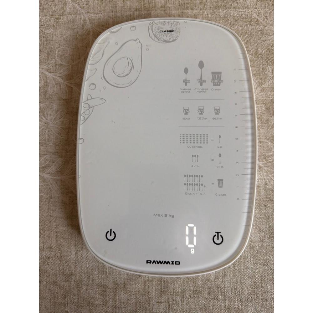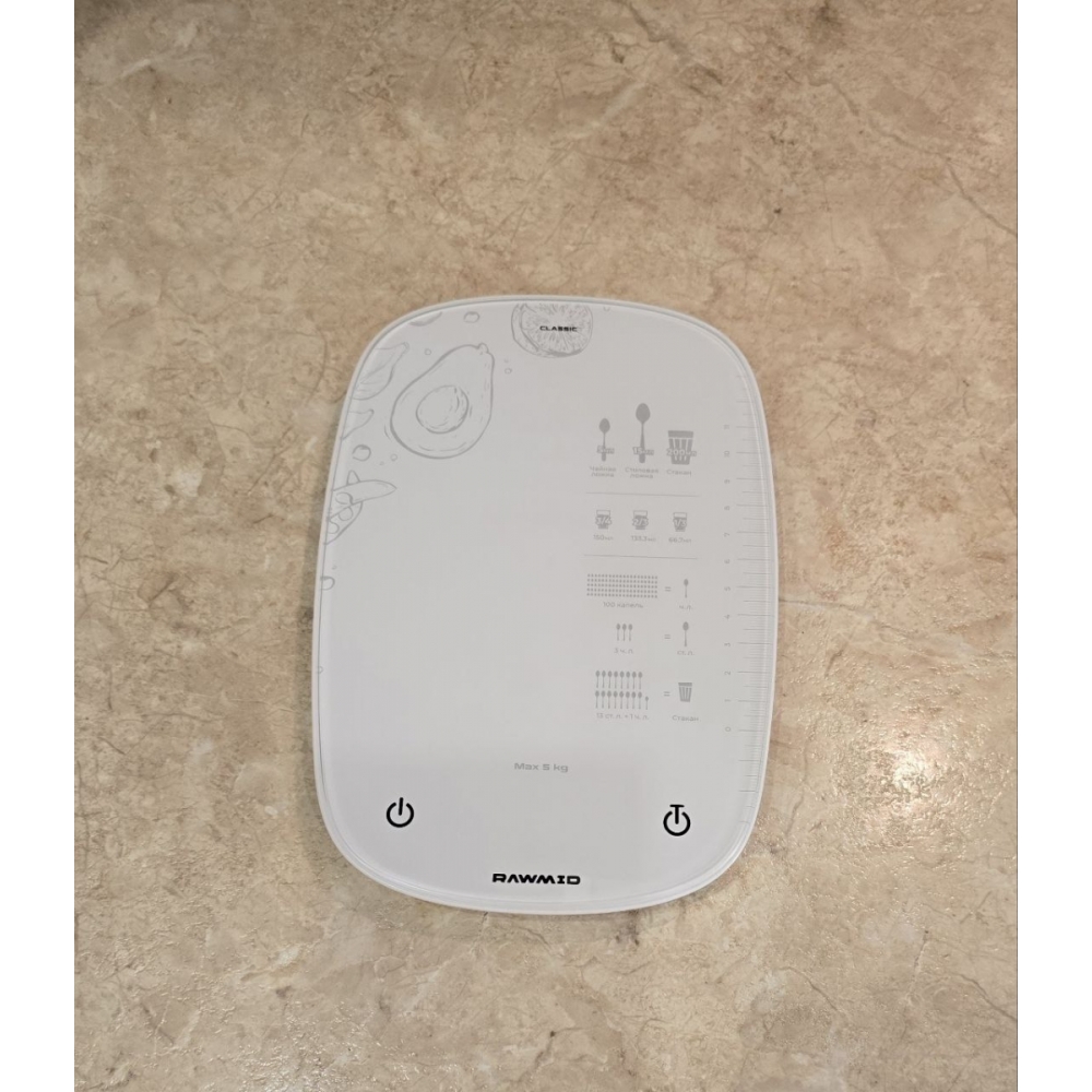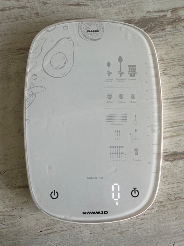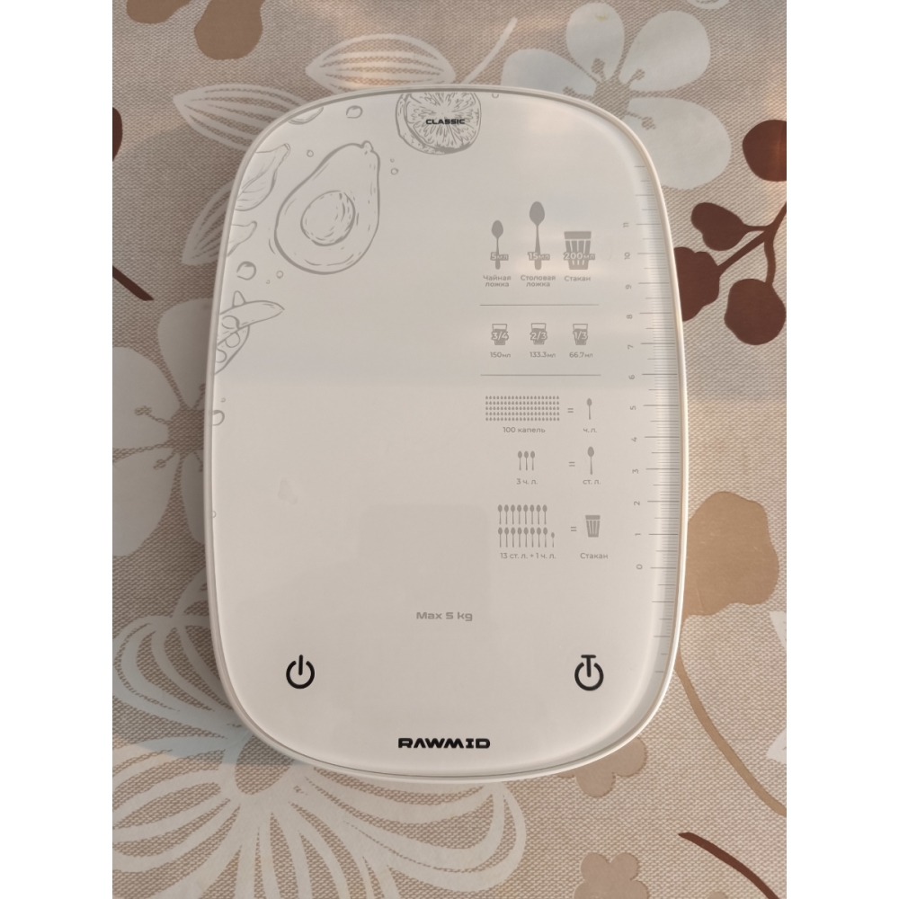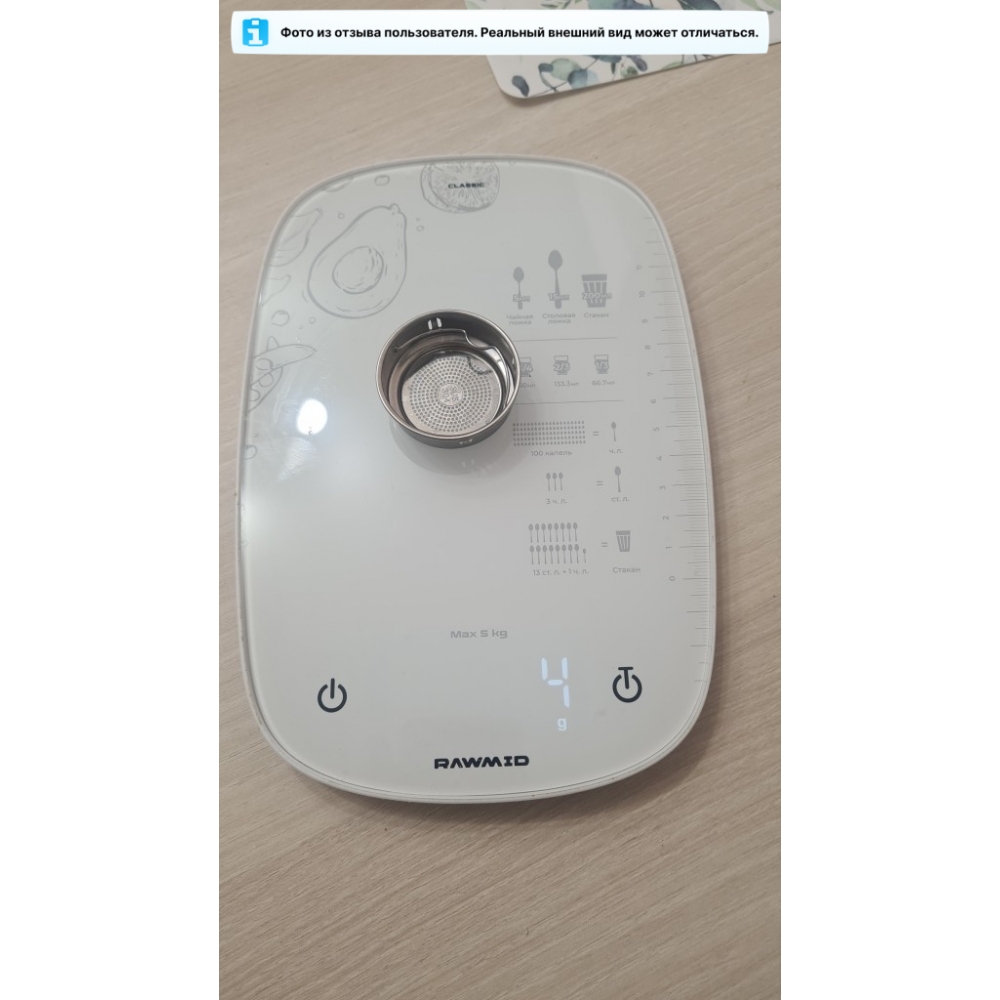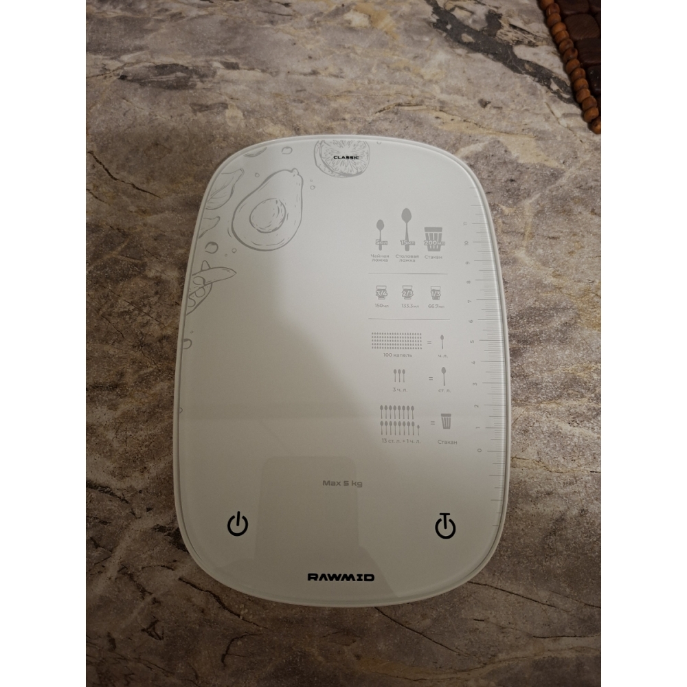 Кухонные весы RAWMID позволяют взвешивать продукты массой до 5 кг, а высокоточные датчики обеспечивают точность измерений до 1 г.