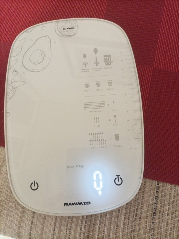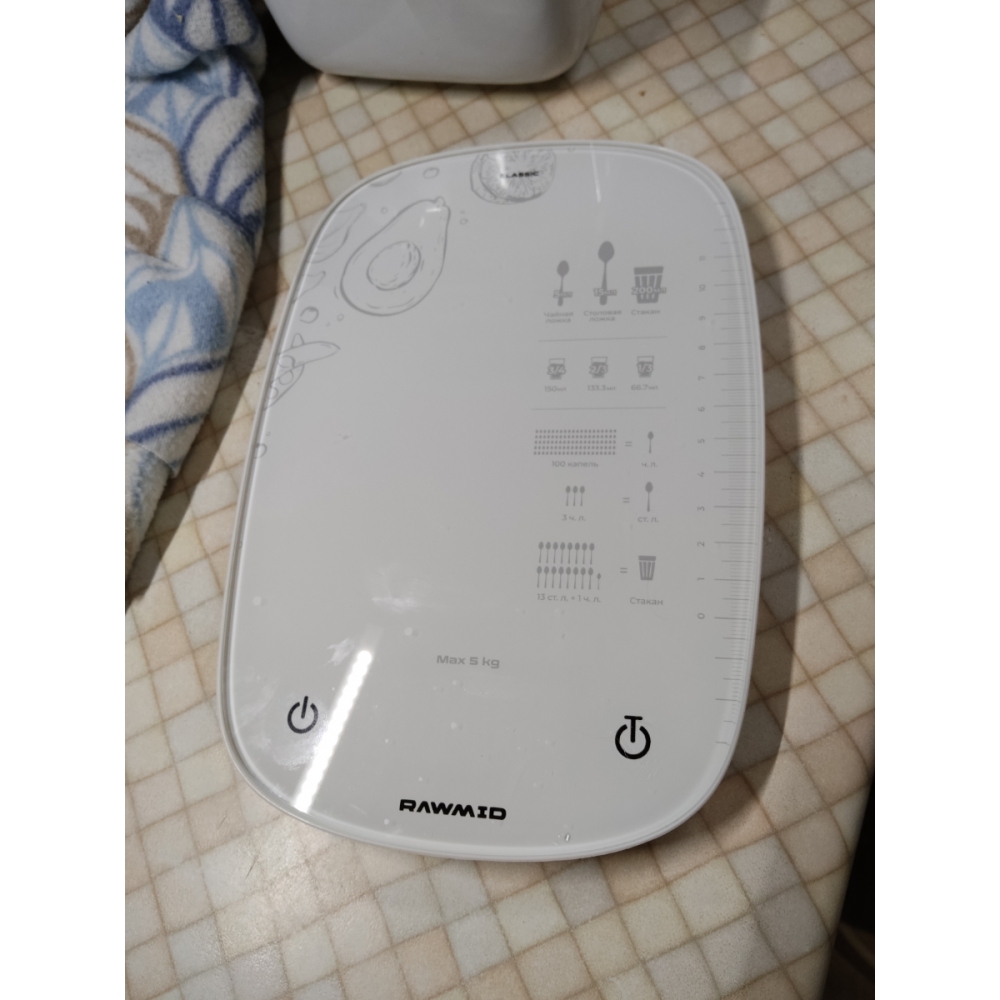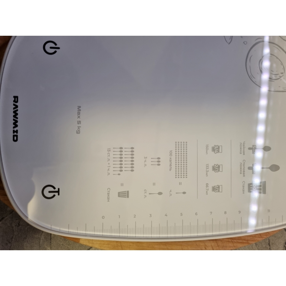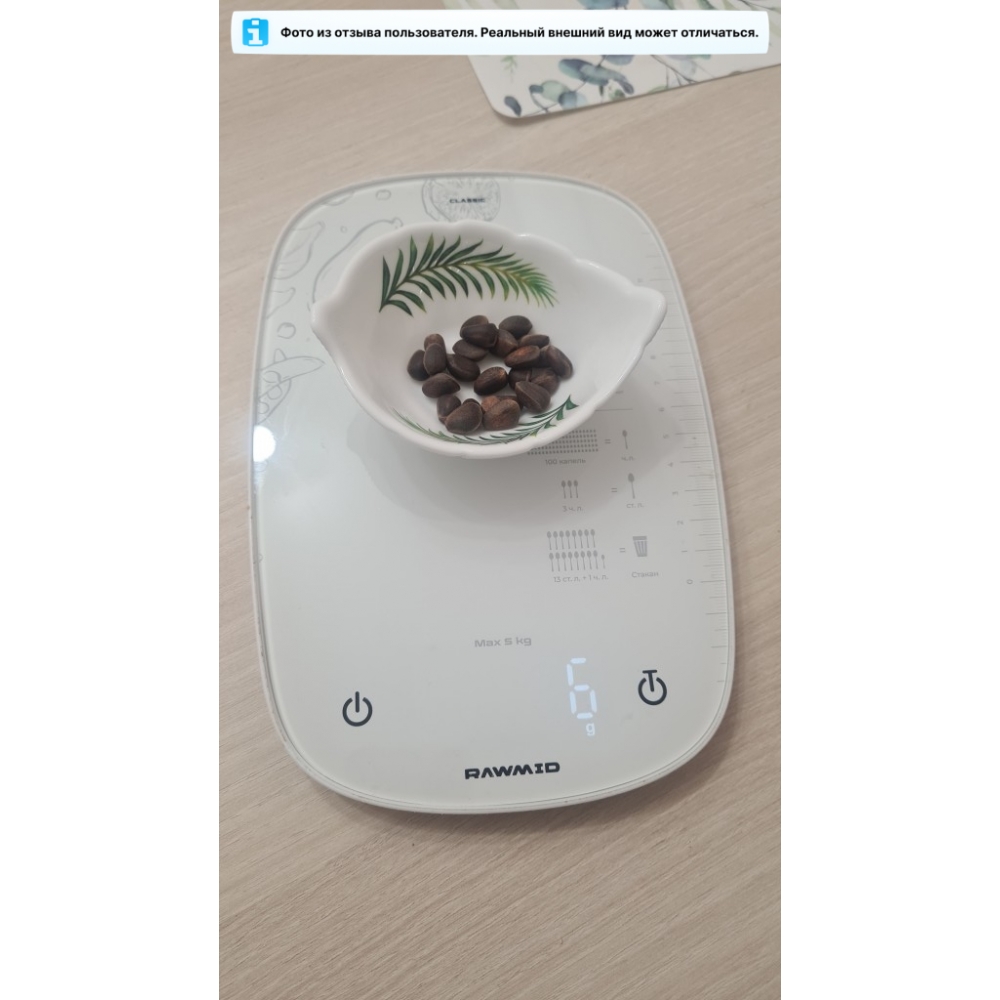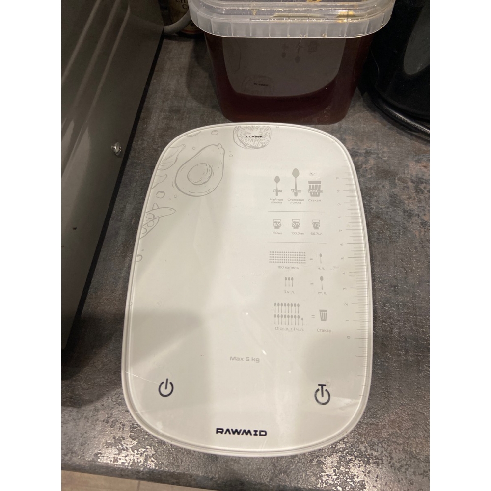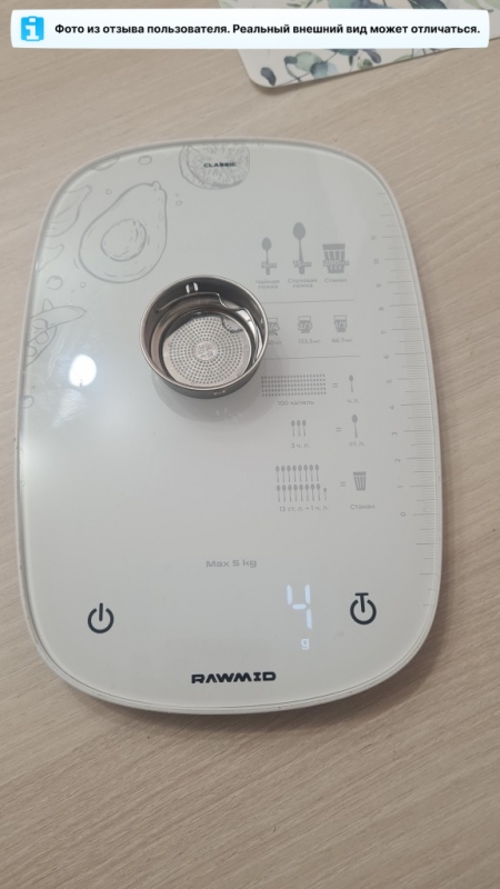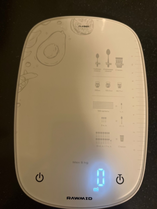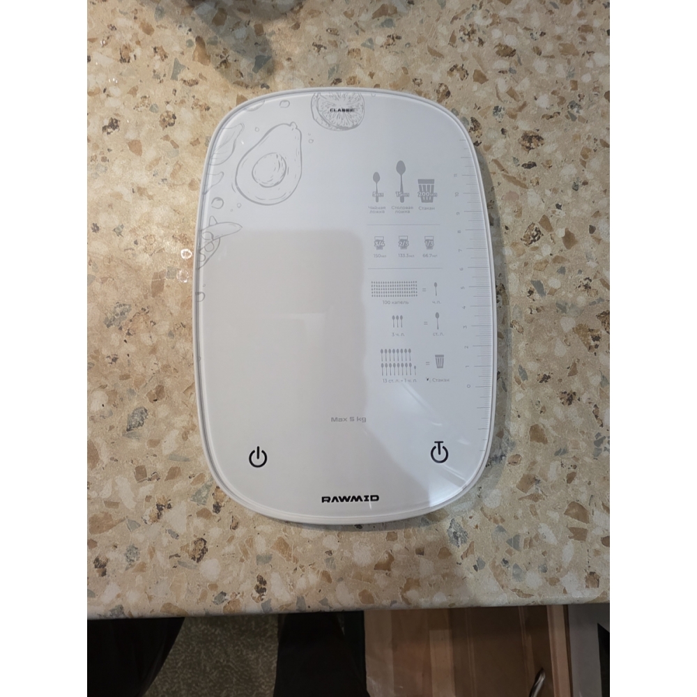 Кухонные весы RAWMID позволяют взвешивать продукты массой до 5 кг, а высокоточные датчики обеспечивают точность измерений до 1 г.