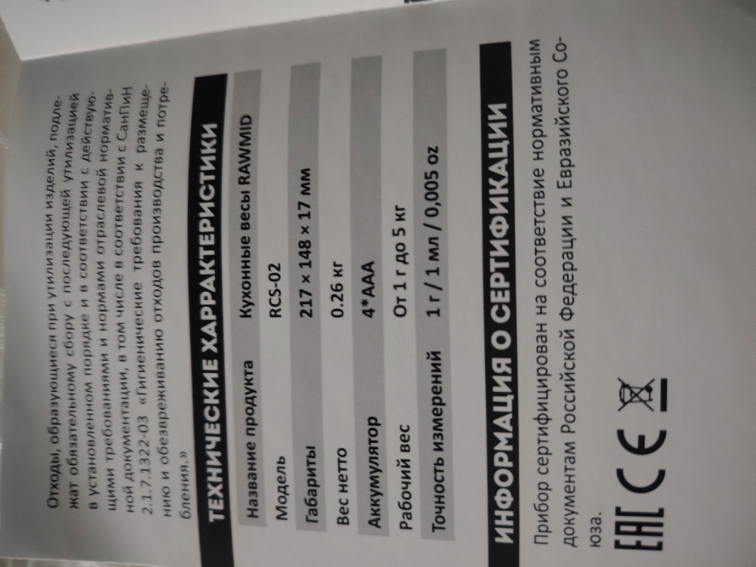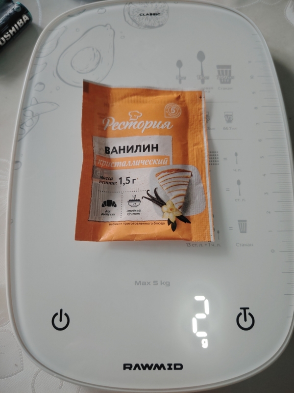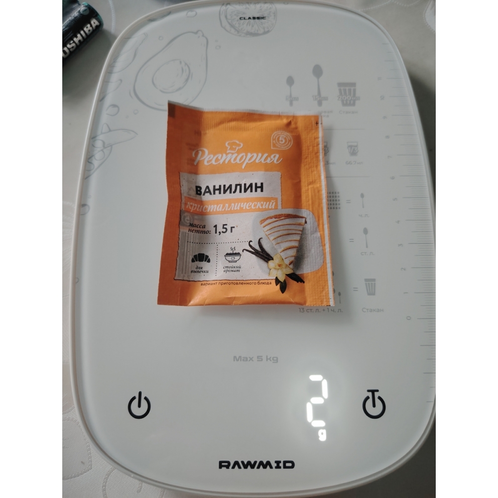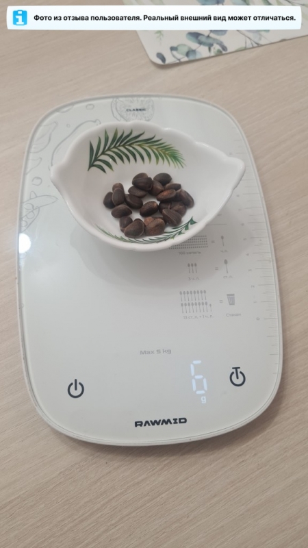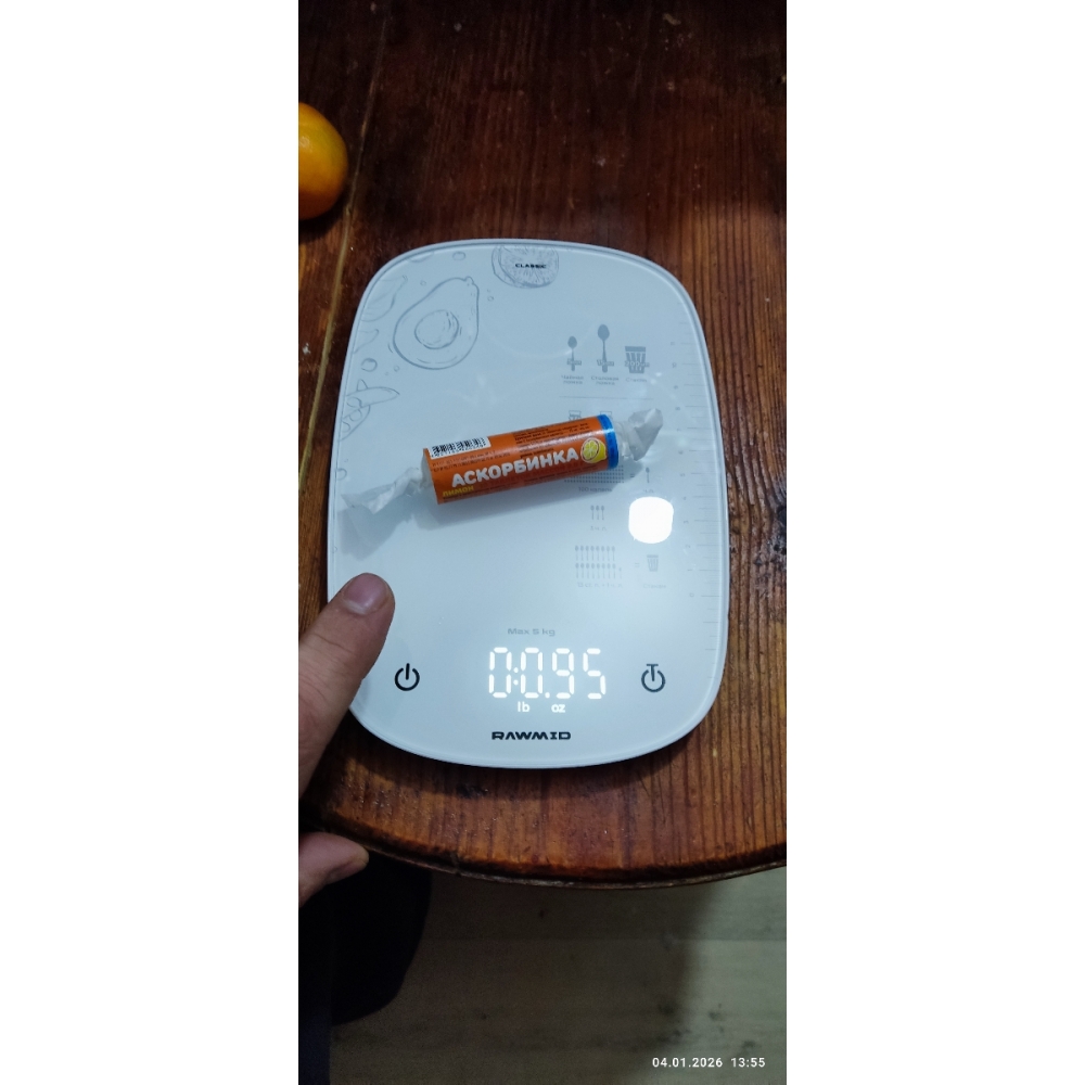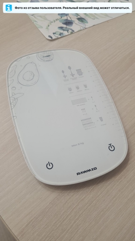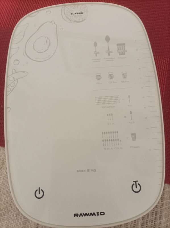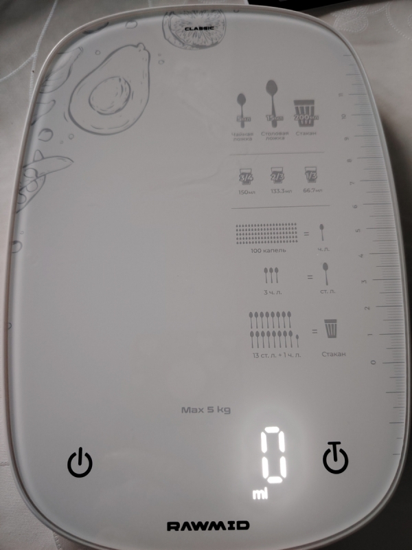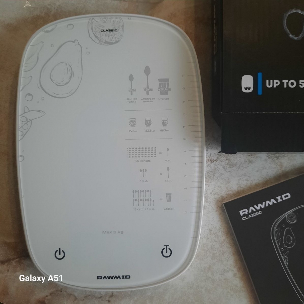 Кухонные весы RAWMID позволяют взвешивать продукты массой до 5 кг, а высокоточные датчики обеспечивают точность измерений до 1 г.
