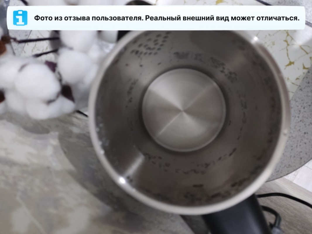 По периметру крышки имеется уплотнитель из пищевого термостойкого силикона. Он обеспечивает плотное прилегание крышки к корпусу, благодаря чему пар не будет выходить из-под крышки и вы не обожгётесь. Также высокая герметичность позволяет лучше сохранять тепло внутри чайника и экономить на электроэнергии.