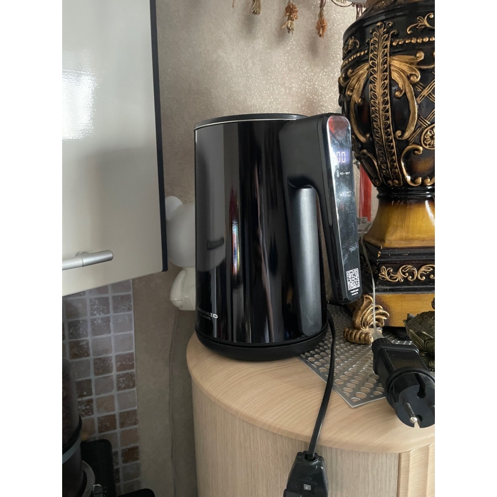 Функция поддержания температуры работает на протяжении 4 часов после активации. При этом, благодаря высокой теплоизоляции корпуса, чайник расходует мало электроэнергии.