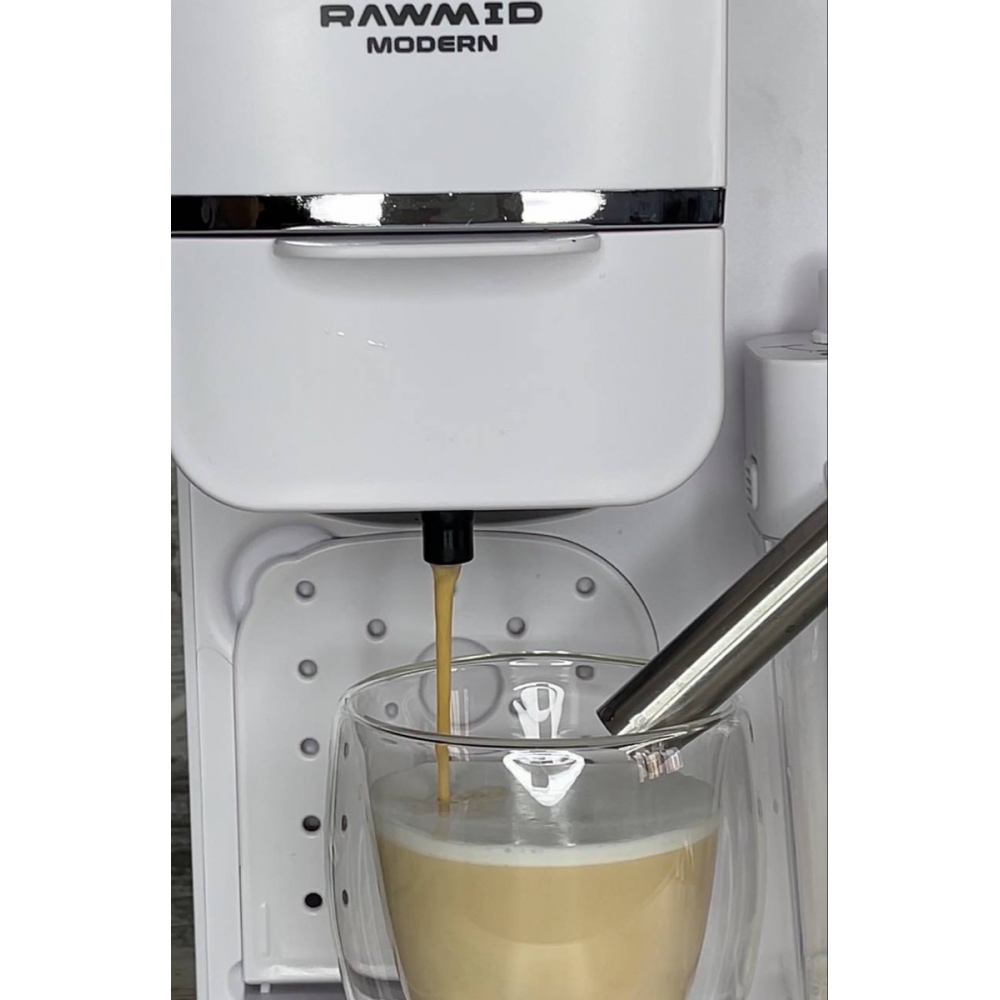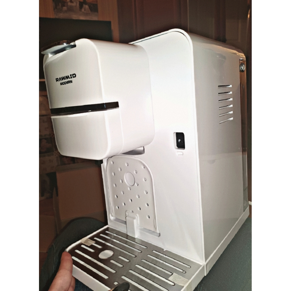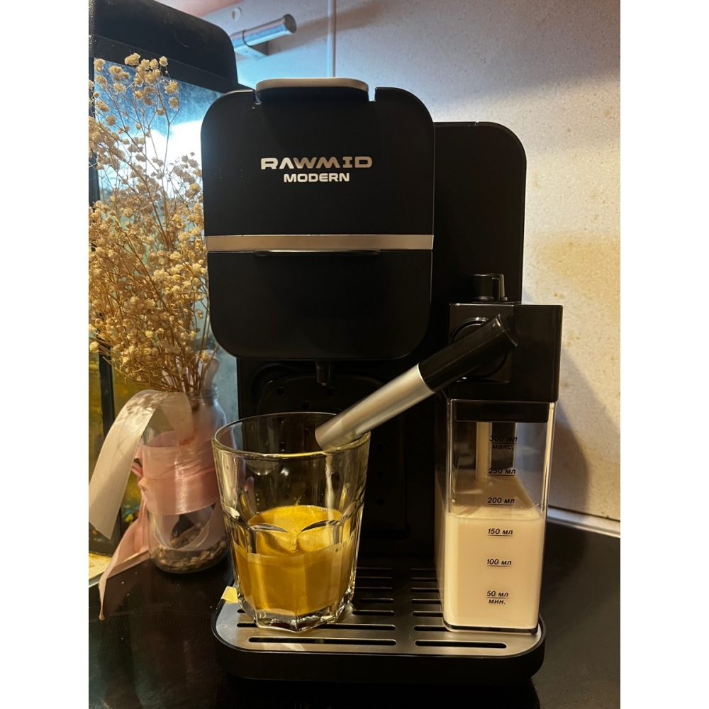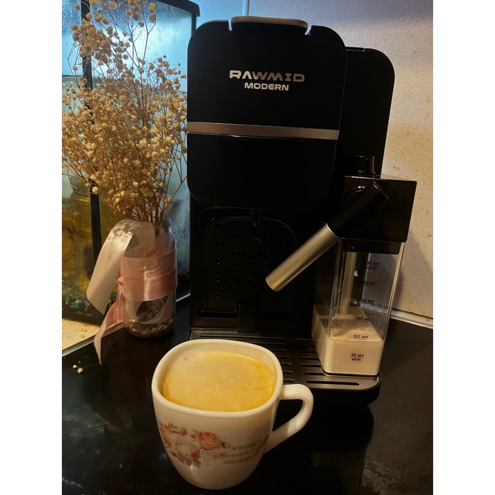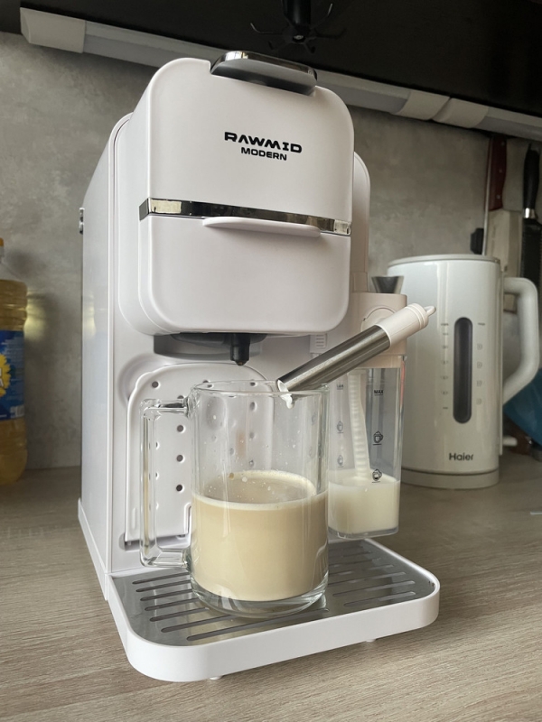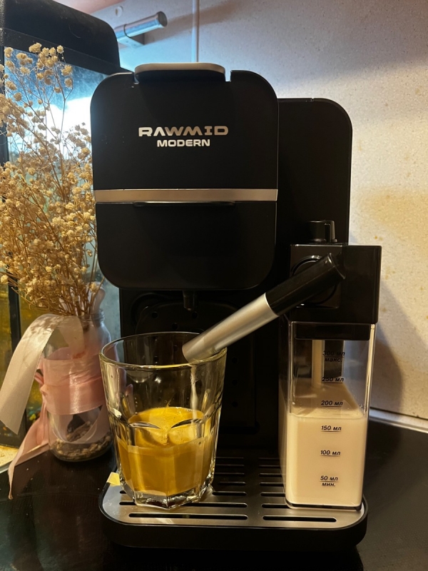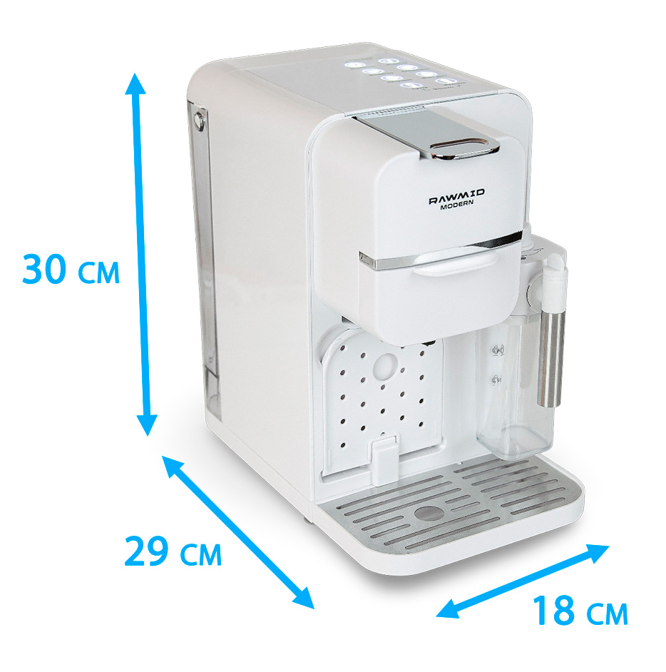 Кофемашину RAWMID легко содержать в чистоте благодаря не только функции самоочистки, но и продуманной конструкции прибора. Поддон для капель защищает стол от возможных проливов напитков, а после использования его можно легко снять и очистить. Капучинатор после использования также легко разбирается и промывается, а ещё его можно промыть, если залить в ёмкость для молока воду и пропустить пару раз.