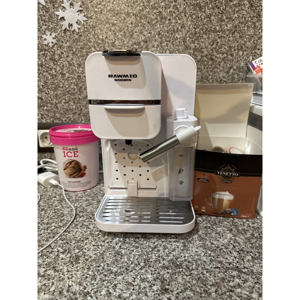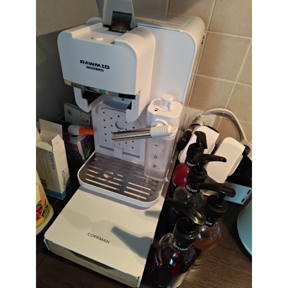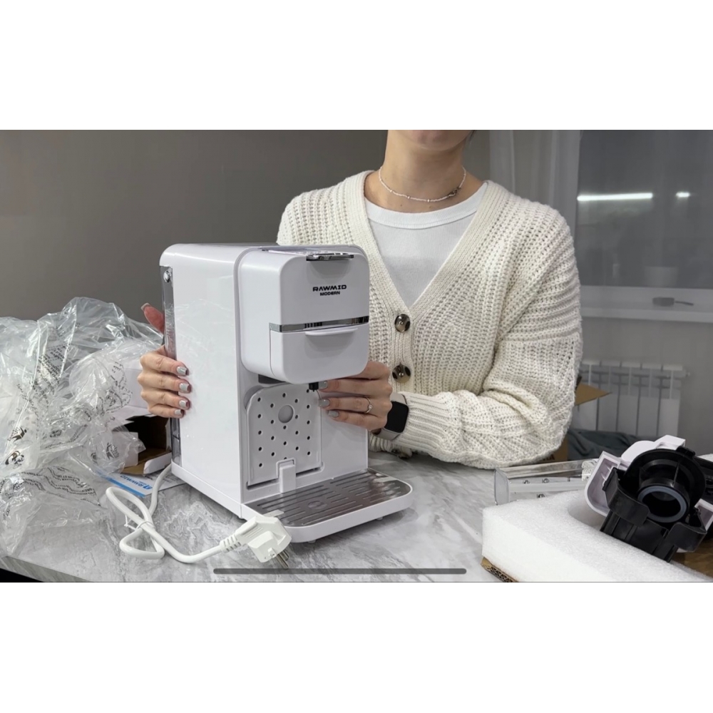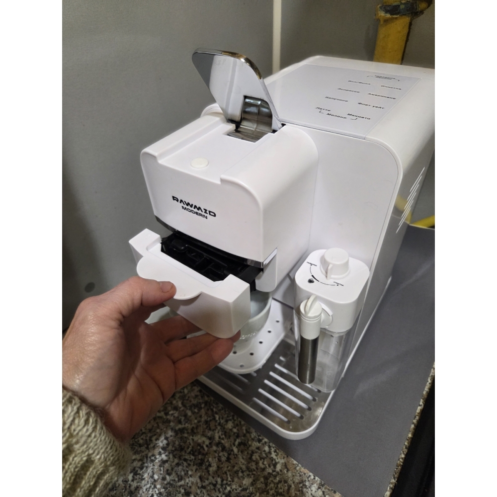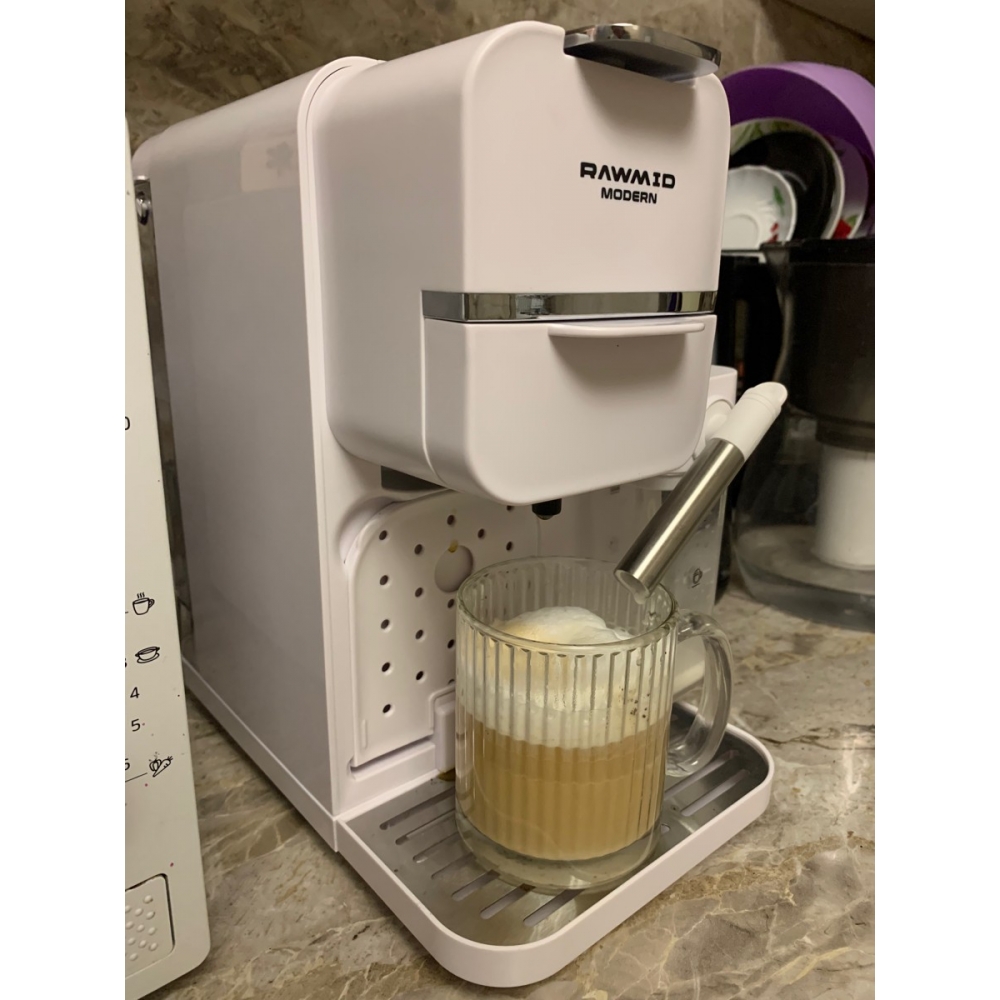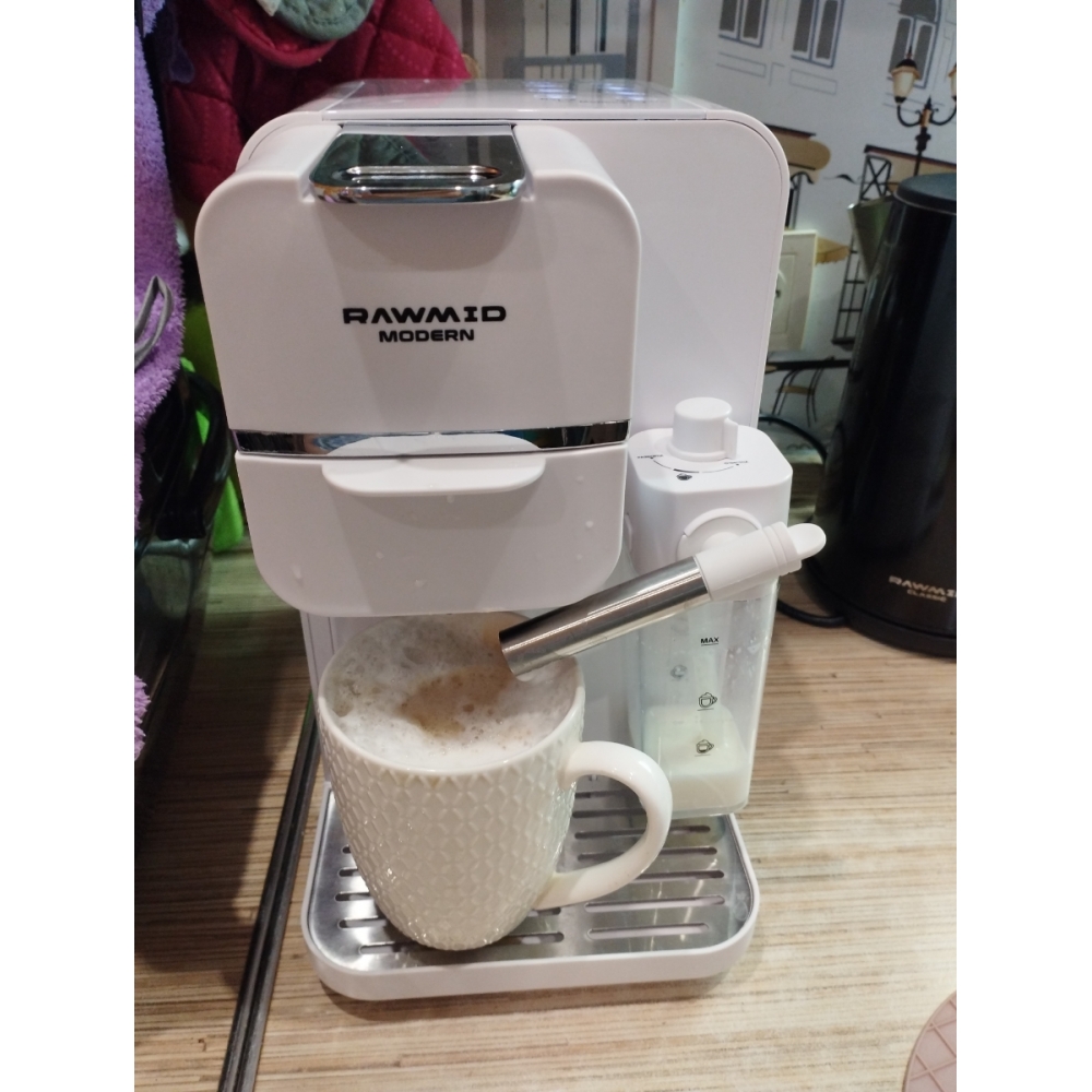 Кофемашину RAWMID легко содержать в чистоте благодаря не только функции самоочистки, но и продуманной конструкции прибора. Поддон для капель защищает стол от возможных проливов напитков, а после использования его можно легко снять и очистить. Капучинатор после использования также легко разбирается и промывается, а ещё его можно промыть, если залить в ёмкость для молока воду и пропустить пару раз.
