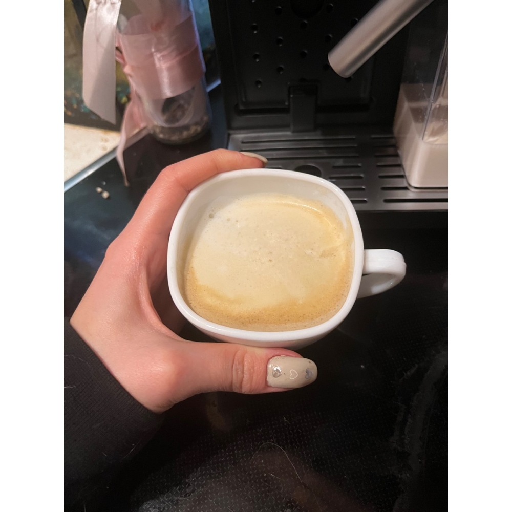 Позволяет готовить кофейные напитки с молоком или пеной буквально в один клик. Вам не придётся держать чашку на весу и взбивать молоко вручную — кофемашина всё сделает за вас. Пышность пены можно настроить ручным регулятором, расположенным над ёмкостью для молока. Ёмкость съёмная и вместо неё можно использовать любую другую, поместив в неё шланг.