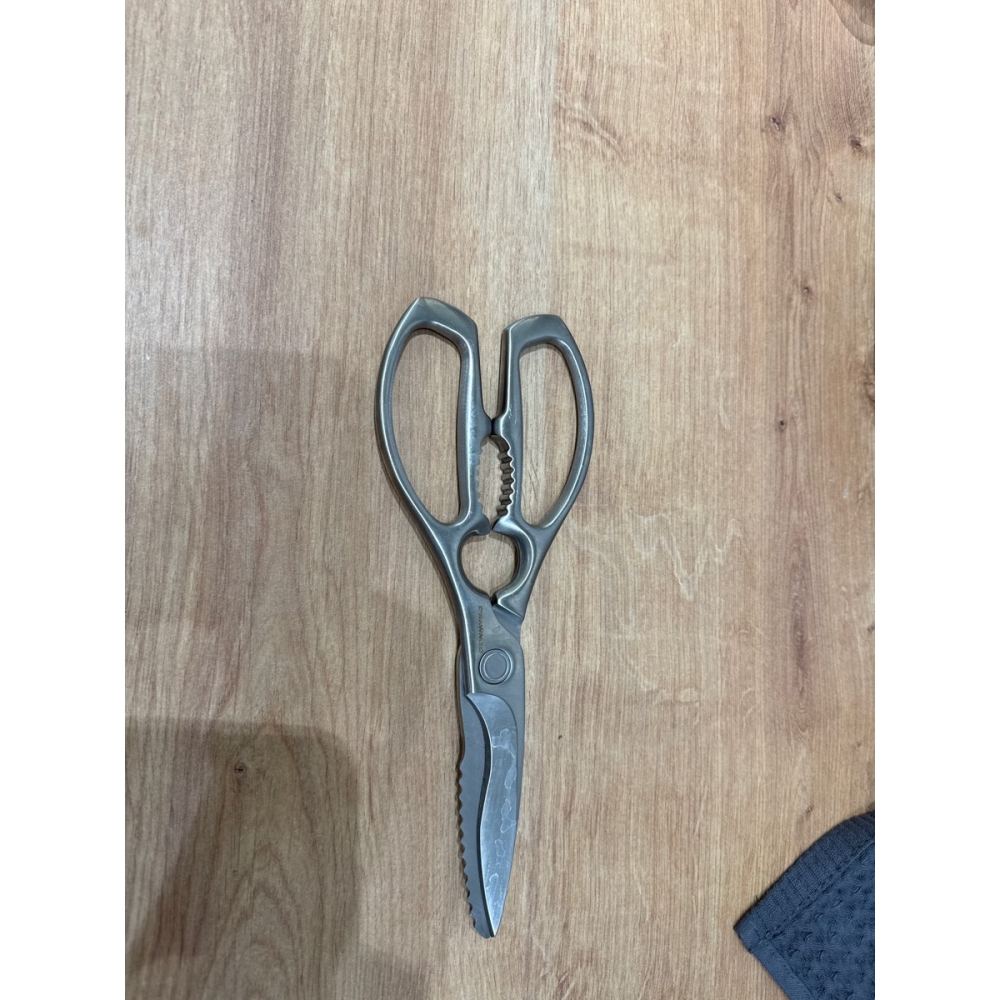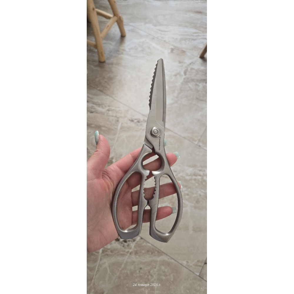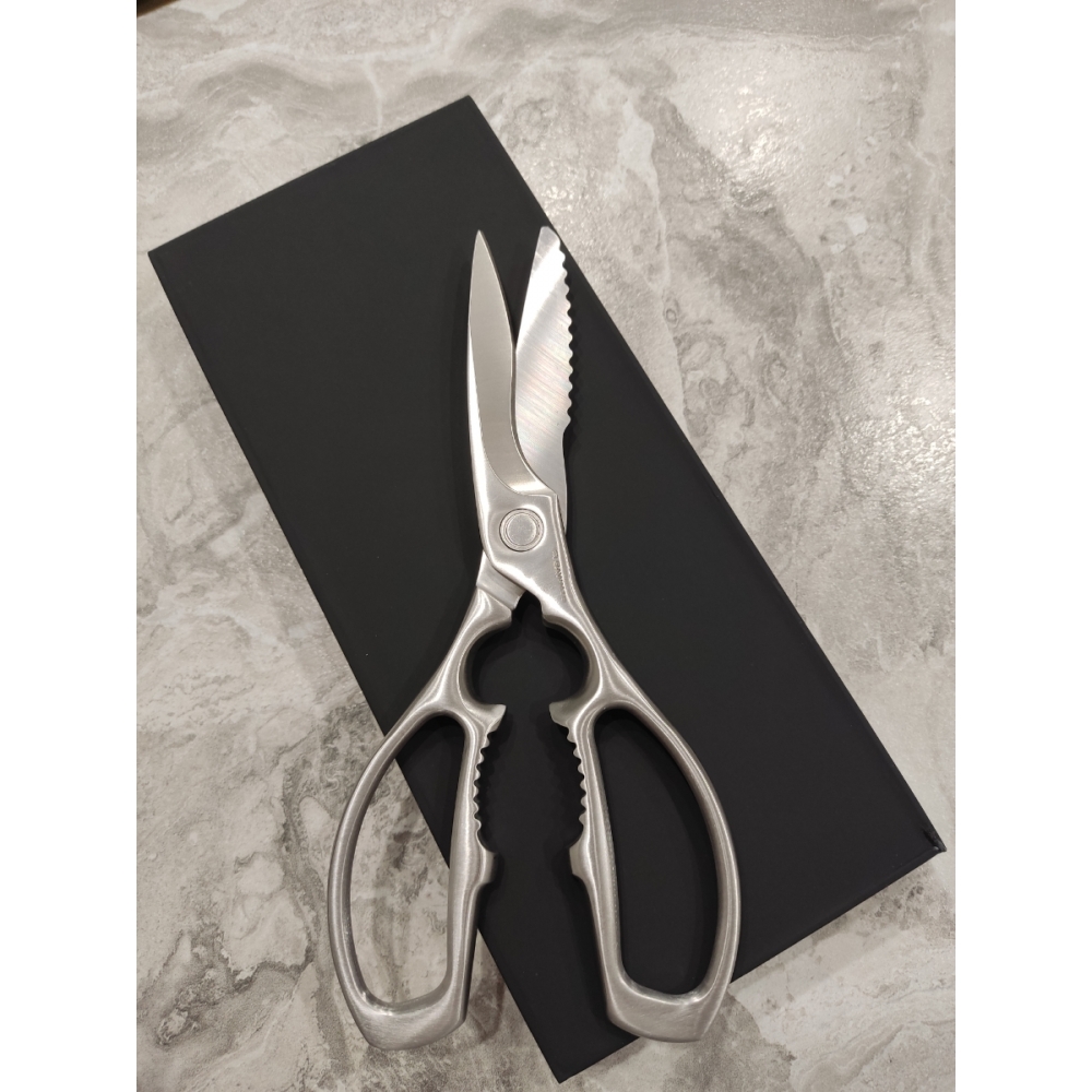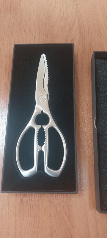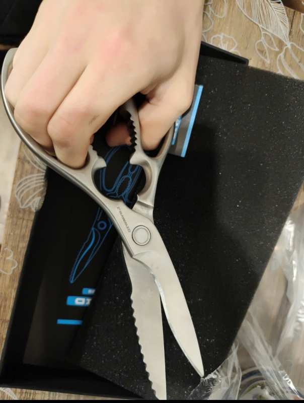Ножницы выполнены из прочной нержавеющей стали марки 3Cr14. В составе этого сплава 0,3% углерода, придающего лезвиям твёрдость и остроту. Твёрдость стали составляет 50-52 HRC, что обеспечивает лёгкую заточку.