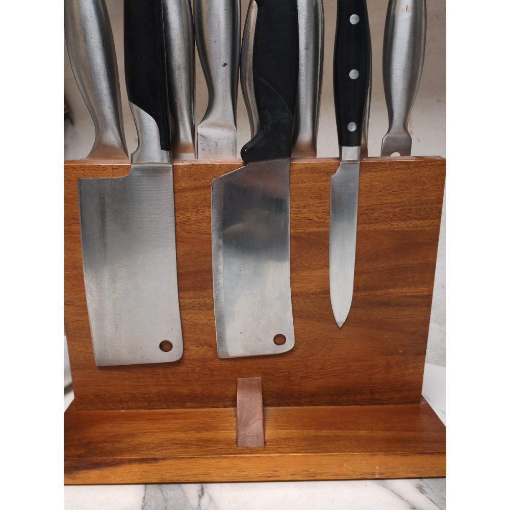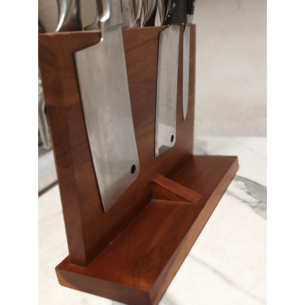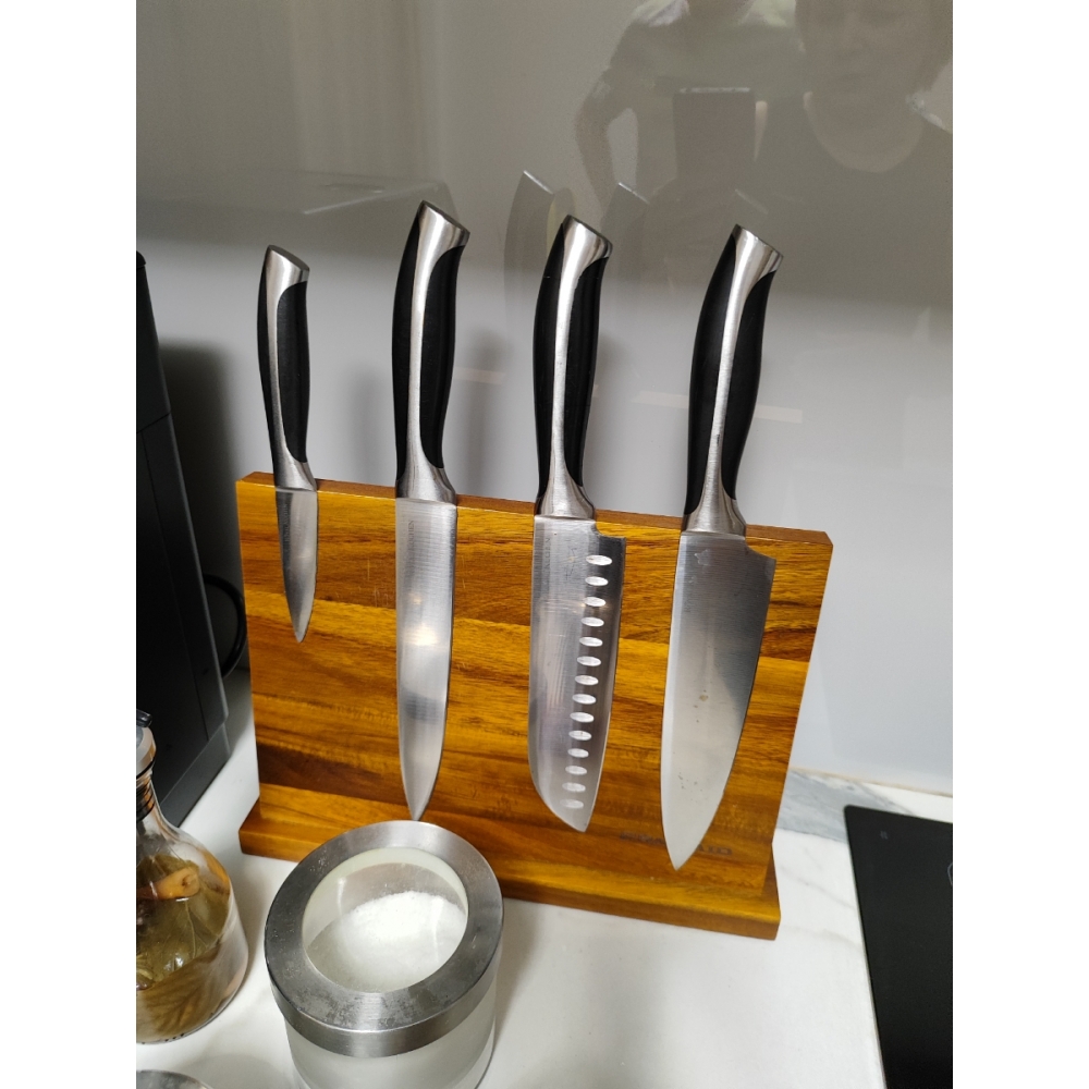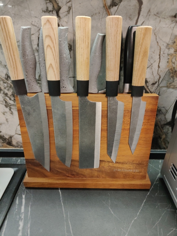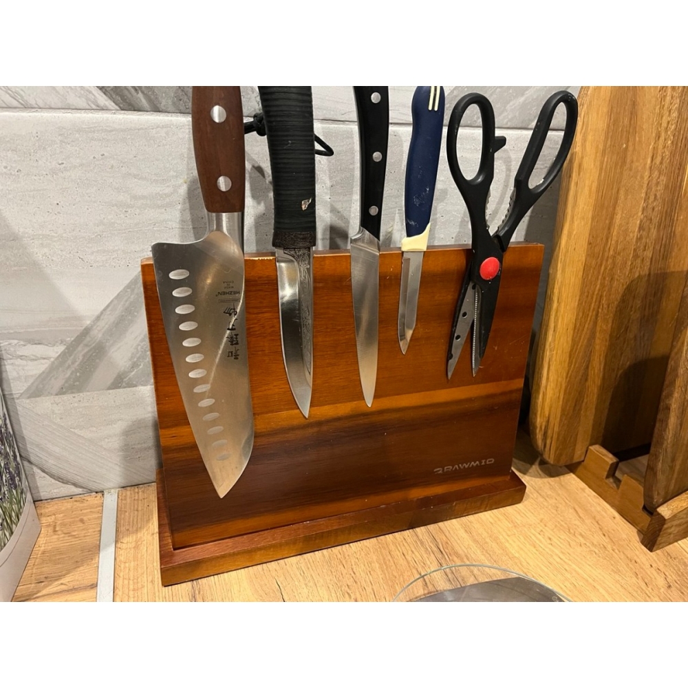 Магнитная подставка RAWMID выполнена из древесины акации и имеет высокую твёрдость и прочность. Также эта порода обладает высокой биоустойчивостью: не подвергается воздействию жучков-вредителей, хорошо сопротивляется отсыреванию. На подставку помещаются 4-5 широких ножей. Идеально сочетается с кухонными ножами RAWMID. Встроенный магнит крепко удерживает даже крупные ножи, обеспечивая им комфортные и безопасные условия хранения. Прорезиненные ножки в основании не позволяют подставке скользить и надёжно фиксируют её на поверхности.Магнитная подставка RAWMID выполнена из древесины акации и имеет высокую твёрдость и прочность. Также эта порода обладает высокой биоустойчивостью: не подвергается воздействию жучков-вредителей, хорошо сопротивляется отсыреванию. На подставку помещаются до 9 ножей (с двух сторон) 4-5 широких ножей. Идеально сочетается с кухонными ножами RAWMID. Встроенный магнит крепко удерживает даже крупные ножи, обеспечивая им комфортные и безопасные условия хранения. Прорезиненные ножки в основании не позволяют подставке скользить и надёжно фиксируют её на поверхности.