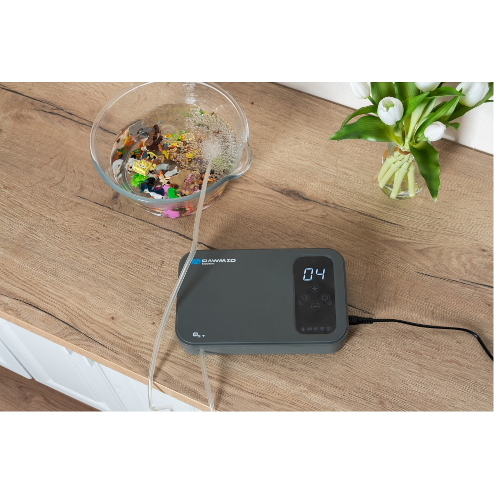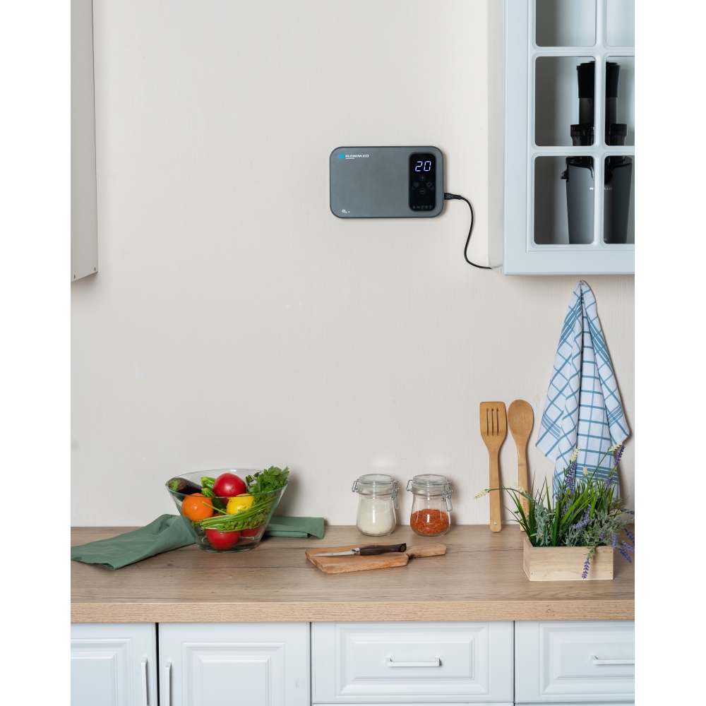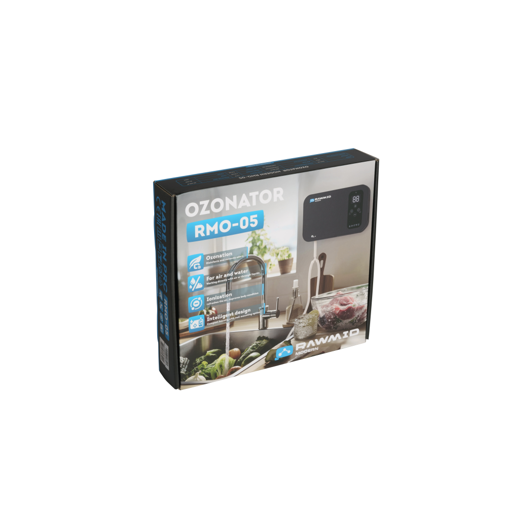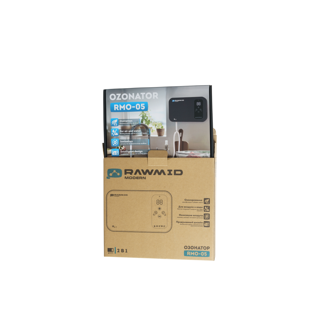 RAWMID Modern RMO-05 — озонатор воздуха для дома, воды и продуктов с ионизацией и управлением через Wi-Fi. Благодаря приложению Smart Life вы можете запускать прибор со смартфона, настраивать расписания и сценарии, соединять его с другими устройствами умного дома и управлять с помощью голосовых ассистентов Алиса или Google Home. Компактный озонатор для дома с функционалом 4-в-1: дезинфекция, устранение запахов, ионизация воздуха и продление свежести продуктов.