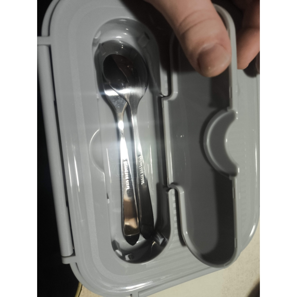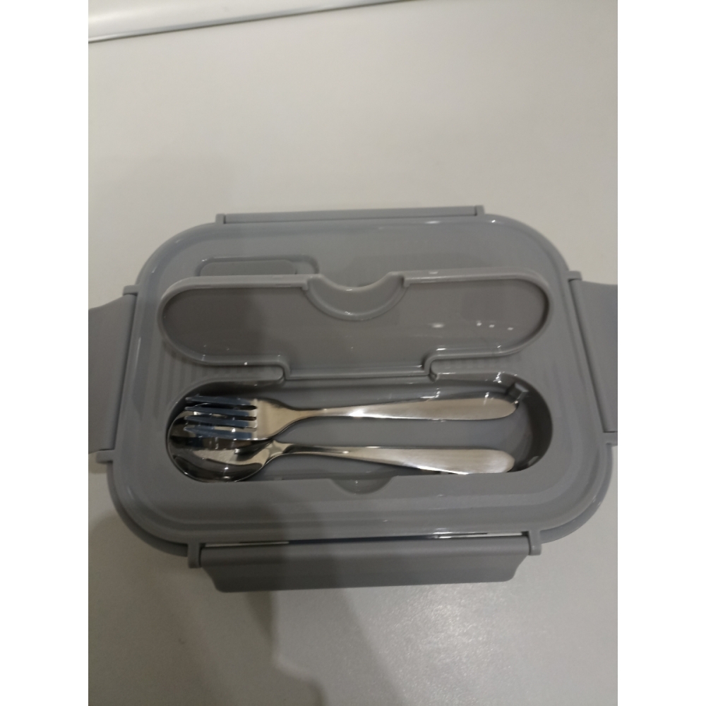 Продуманная конструкция с двумя отделениями позволяет брать с собой полноценный обед: основное блюдо, гарнир или закуску. Герметичная крышка с силиконовым уплотнителем и надёжными защёлками защищает от проливаний и помогает сохранить свежесть продуктов. Верхний отсек крышки аккуратно скрывает вилку и ложку, которые всегда под рукой — удобно в дороге, на работе или во время учёбы.