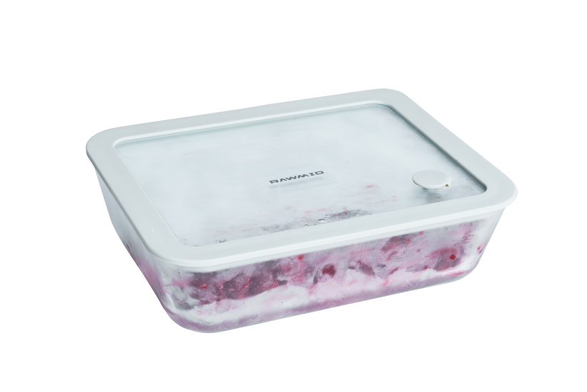 RAWMID RGC-02 — универсальный стеклянный контейнер объёмом 1,4 л, созданный для удобного хранения, приготовления и транспортировки пищи. Он выполнен из прочного боросиликатного стекла, устойчивого к перепадам температур от –40 °C до +560 °C, поэтому одинаково хорошо подходит для запекания, заморозки и разогрева.