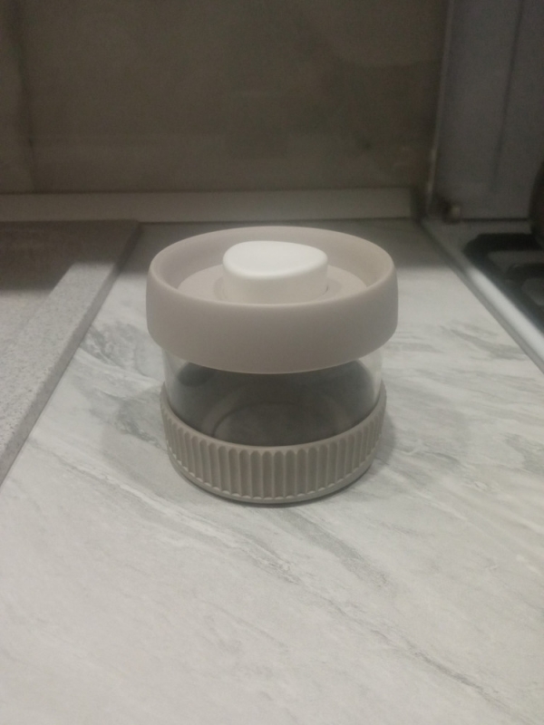 Главная особенность модели — вакуумная система с насосом, которая позволяет удалить воздух изнутри и создать герметичное пространство. Благодаря этому продукты дольше остаются свежими, не теряют аромат и защищены от влаги. Это особенно важно для кофе, орехов, специй и сыпучих ингредиентов, которые быстро впитывают запахи и теряют качество при обычном хранении.