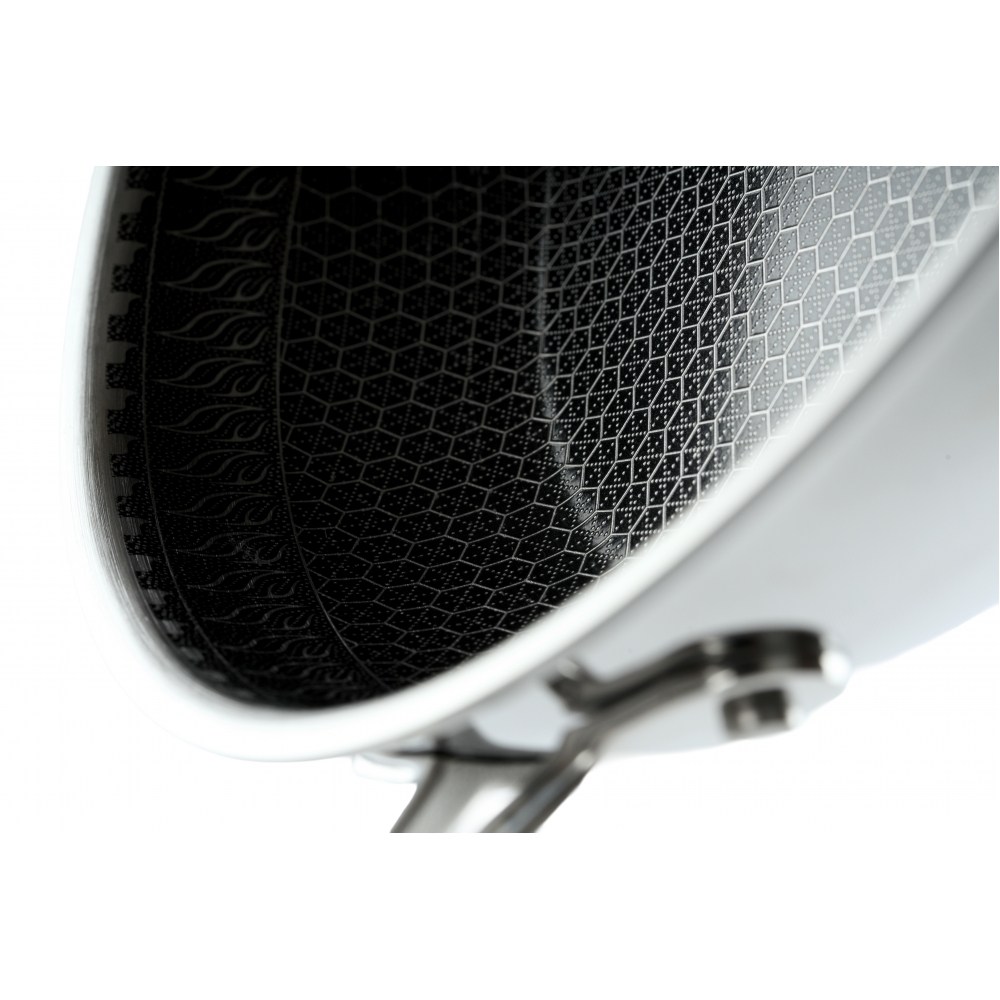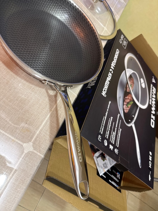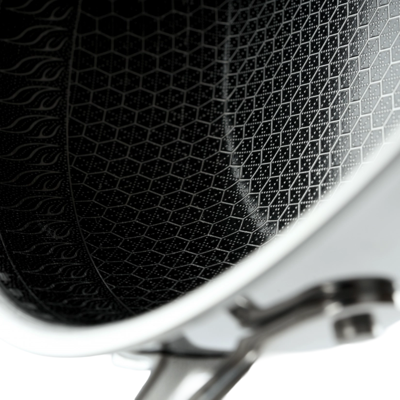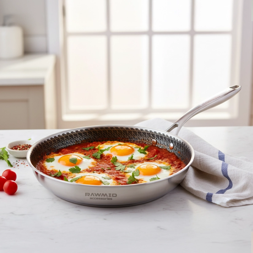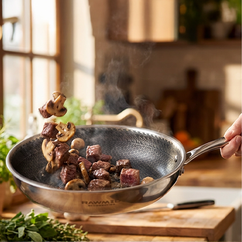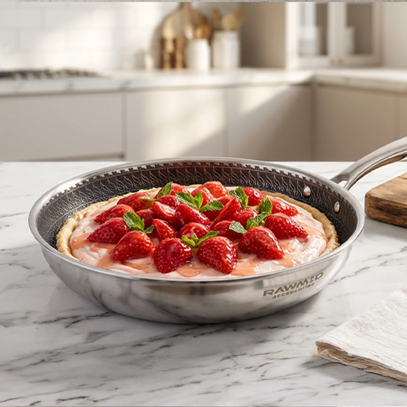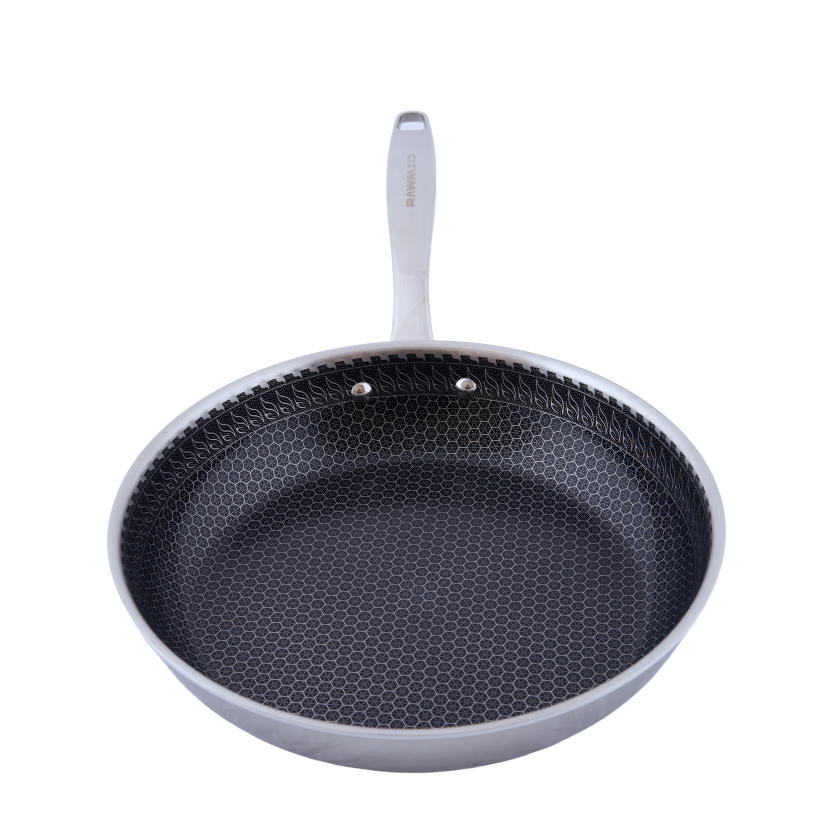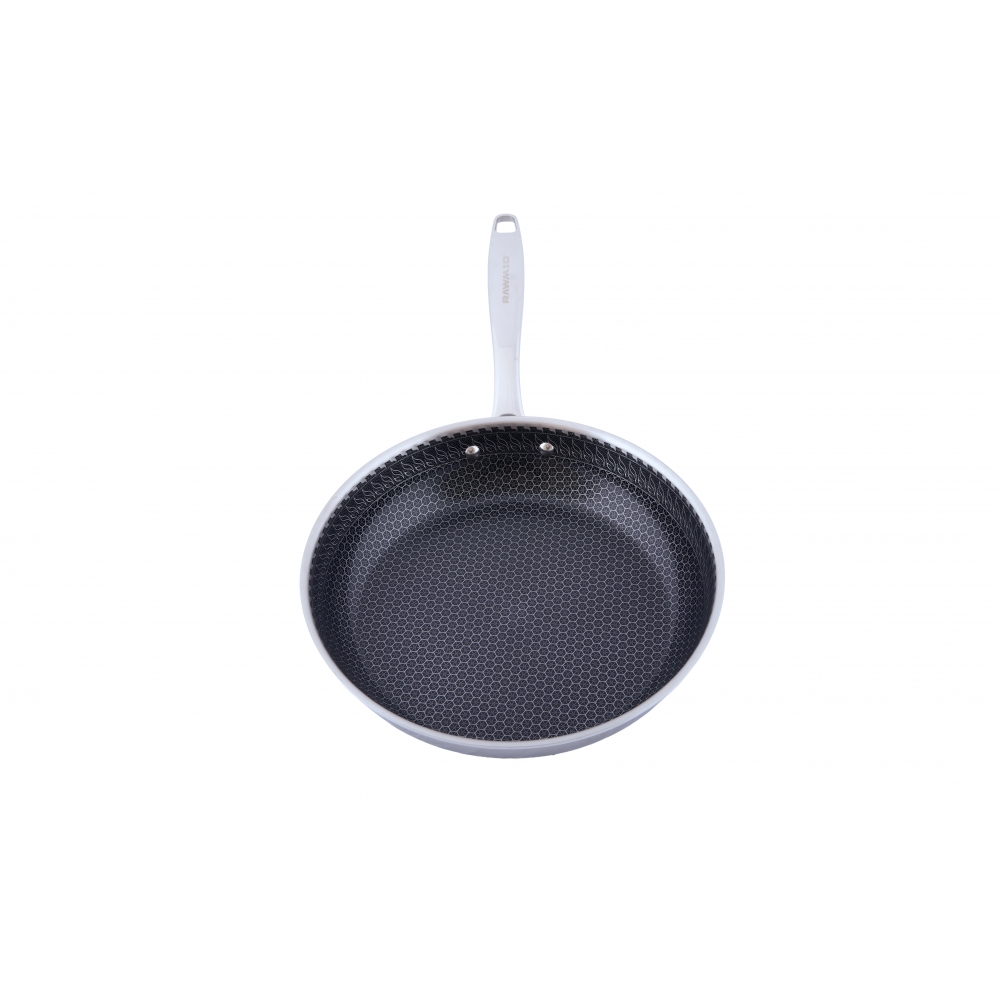 RAWMID RAP-01 — универсальная сковорода с крышкой из трёхслойной стали и керамическим антипригарным покрытием Whitford FUSION. Внутренняя поверхность усилена технологией Honeycomb, которая повышает износостойкость и защищает покрытие от царапин. Трёхслойный корпус с алюминиевым сердечником обеспечивает быстрый и ровный нагрев без горячих точек, что делает сковороду удобной как для жарки, так и для тушения или запекания.