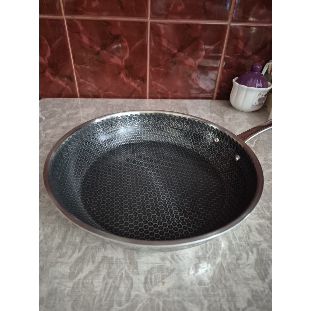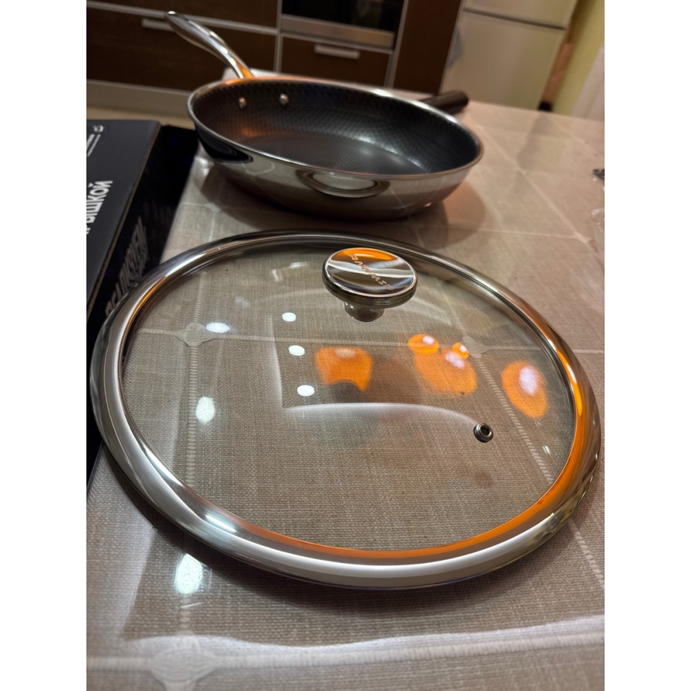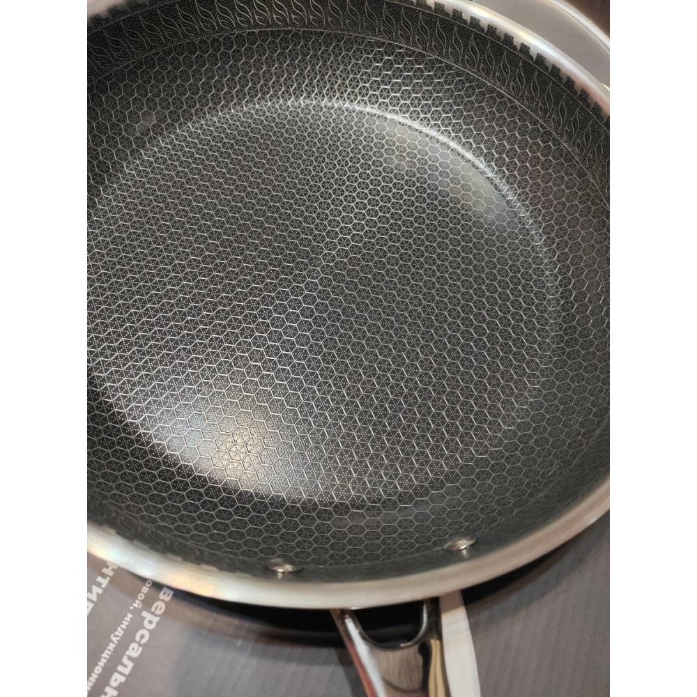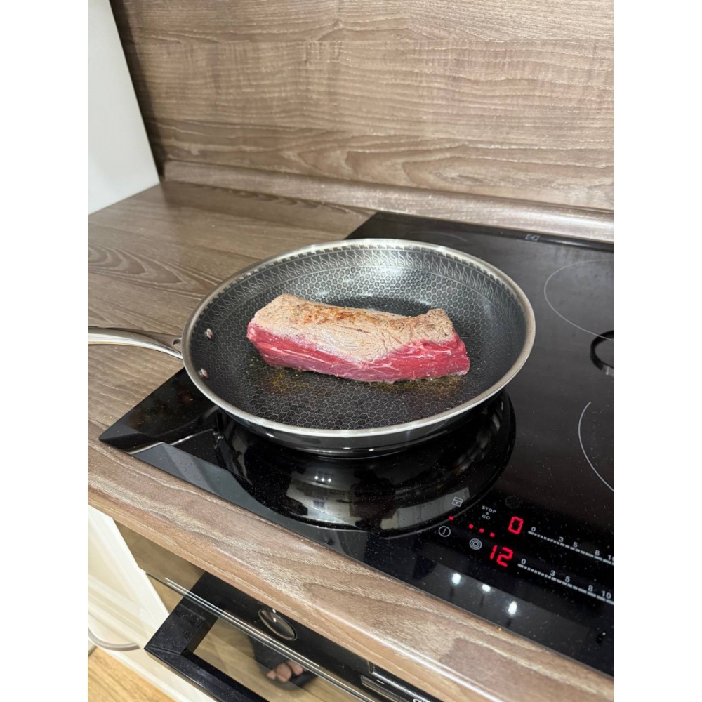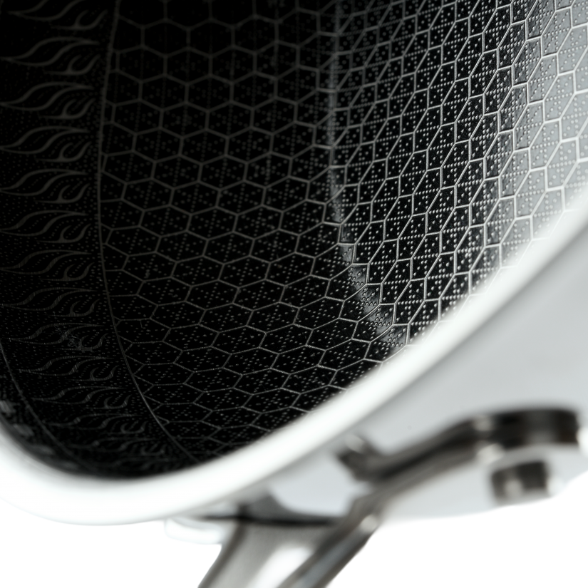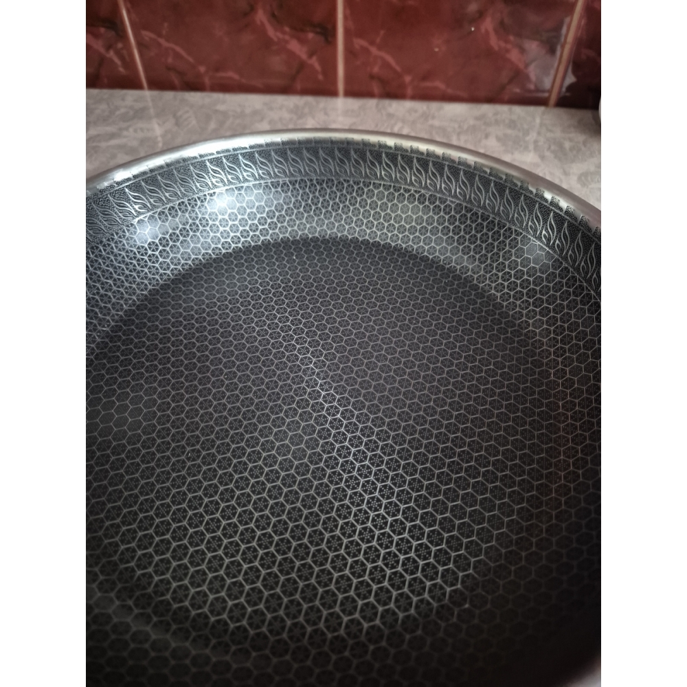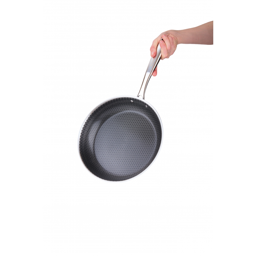 RAWMID RAP-01 — универсальная сковорода с крышкой из трёхслойной стали и керамическим антипригарным покрытием Whitford FUSION. Внутренняя поверхность усилена технологией Honeycomb, которая повышает износостойкость и защищает покрытие от царапин. Трёхслойный корпус с алюминиевым сердечником обеспечивает быстрый и ровный нагрев без горячих точек, что делает сковороду удобной как для жарки, так и для тушения или запекания.