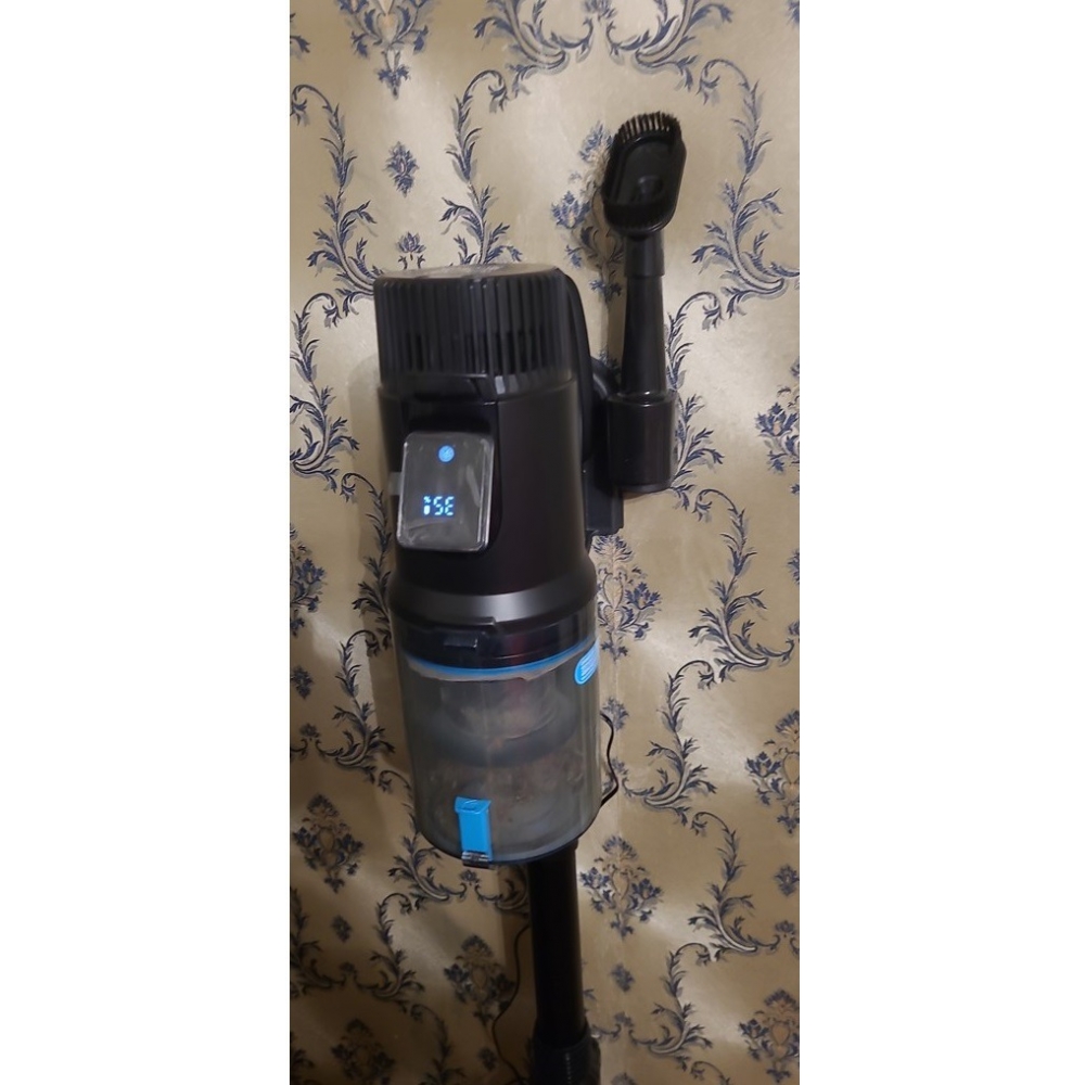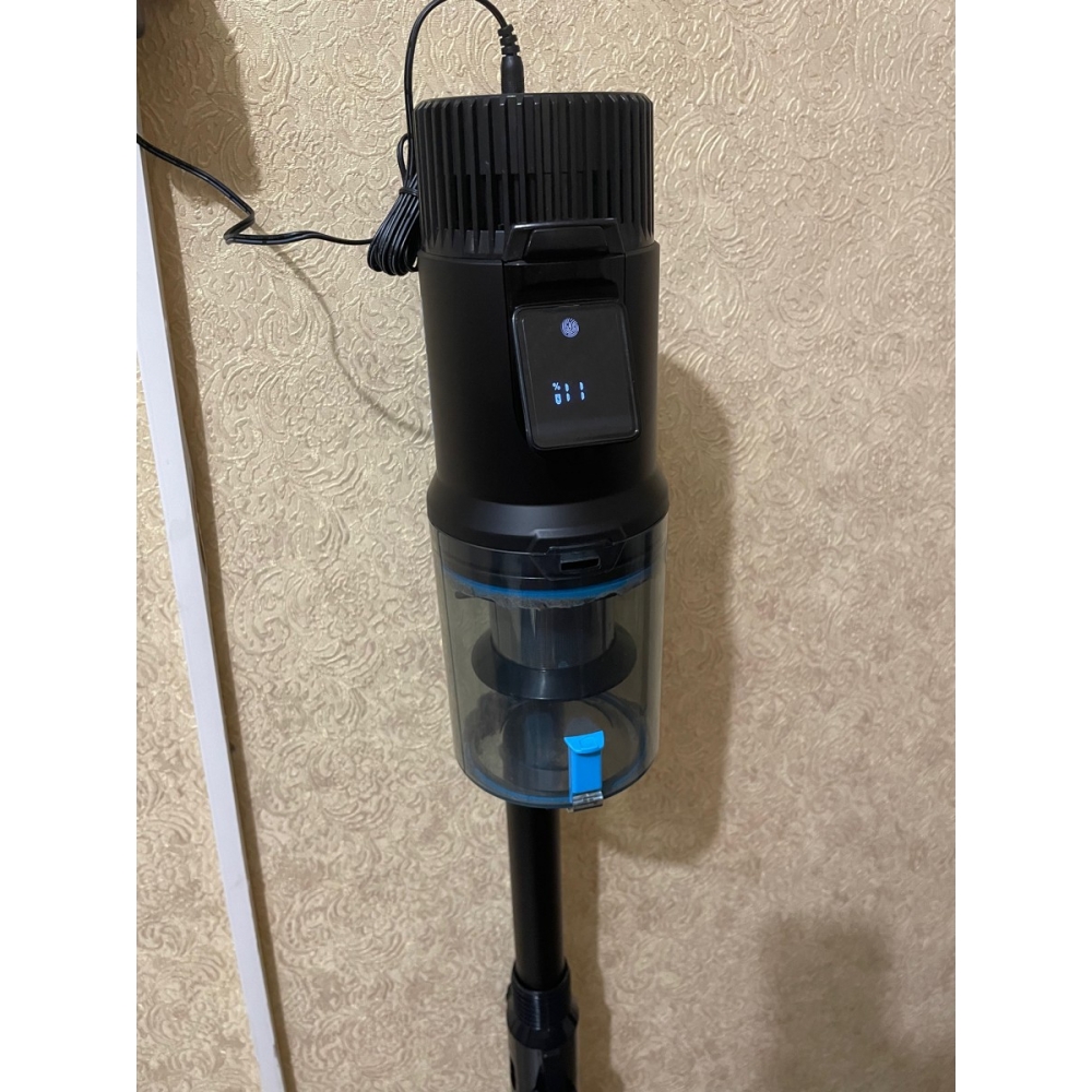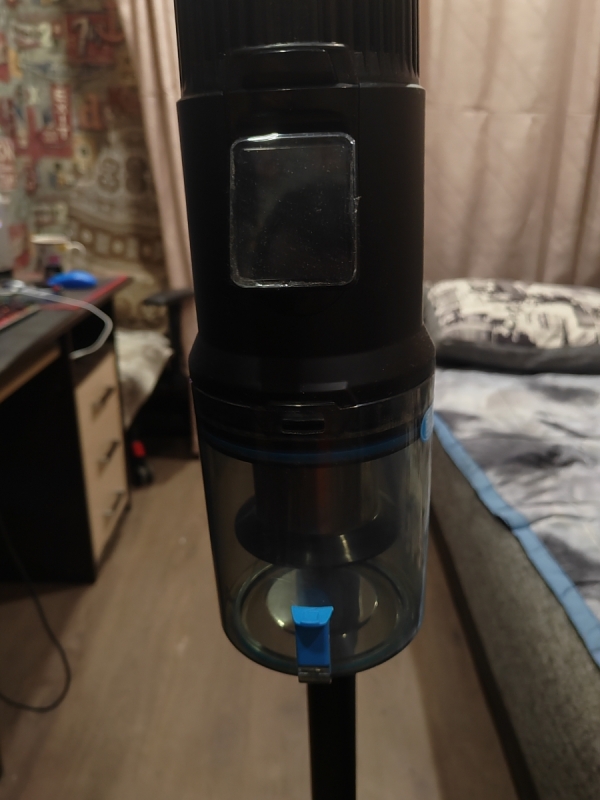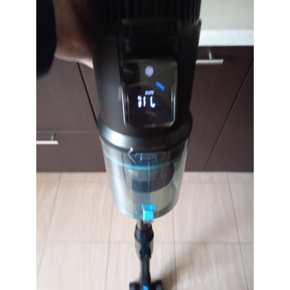 На дисплее во время работы пылесоса отображается оставшийся заряд аккумулятора и текущий режим работы. Переключать режим можно с помощью касания сенсорной кнопки. А специальный индикатор красного цвета подскажет Вам, когда настанет пора очистить контейнер.