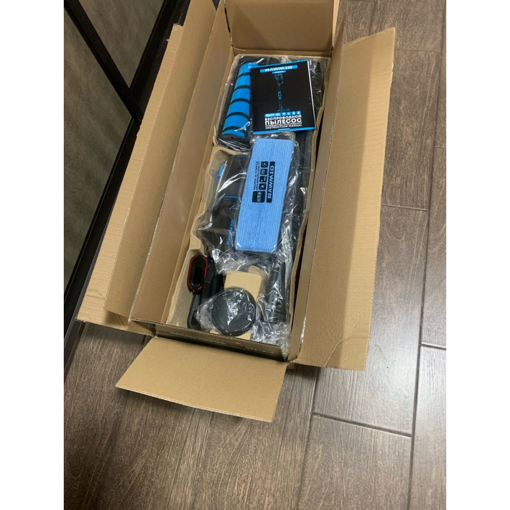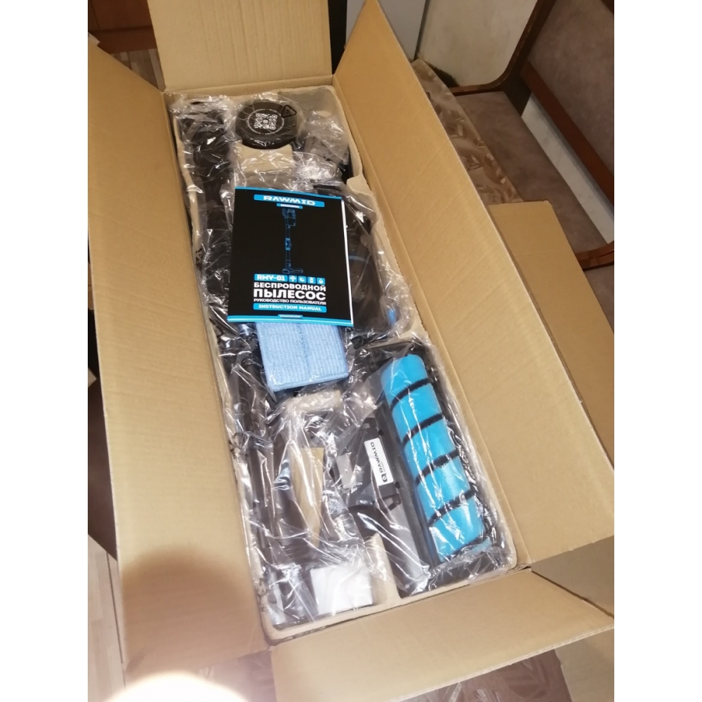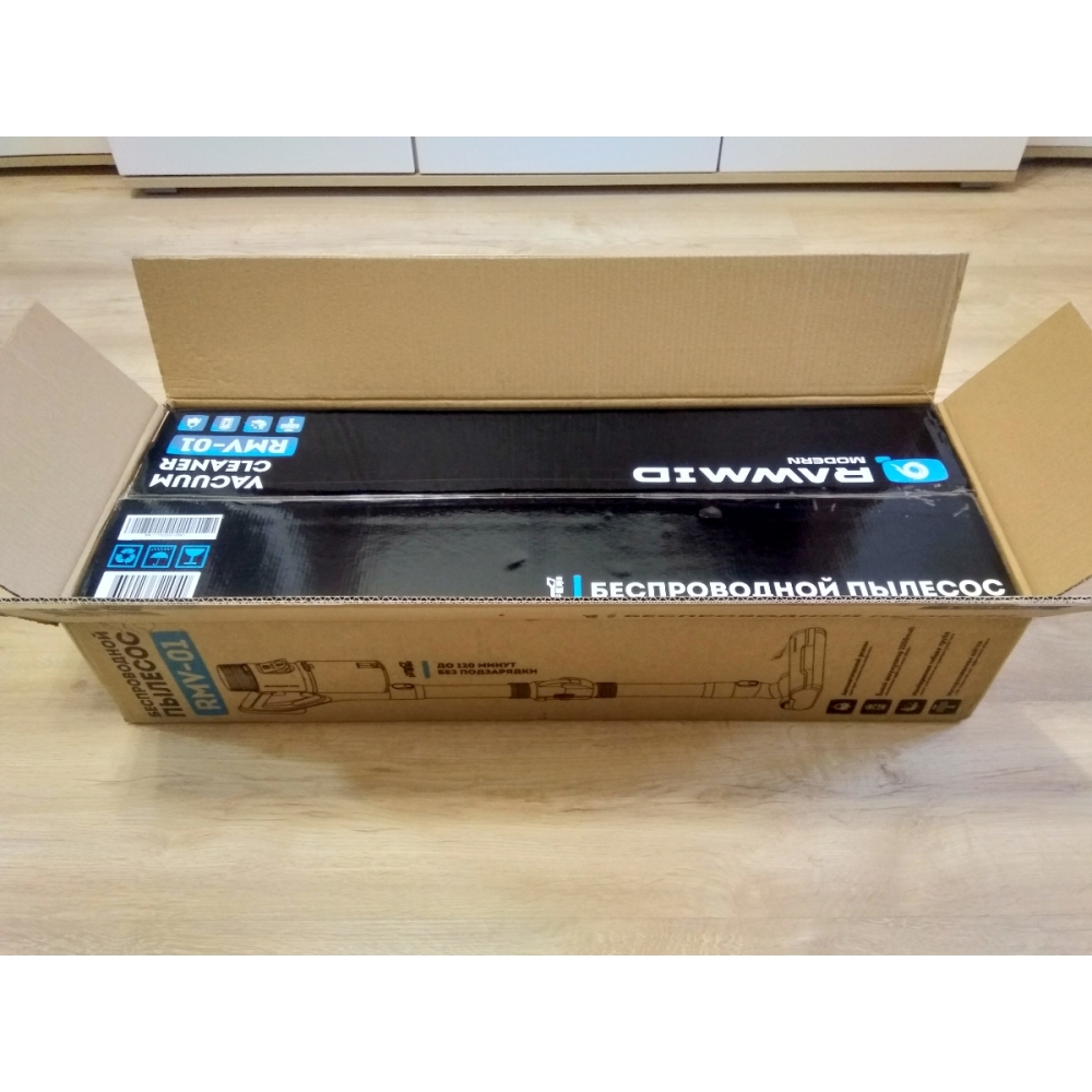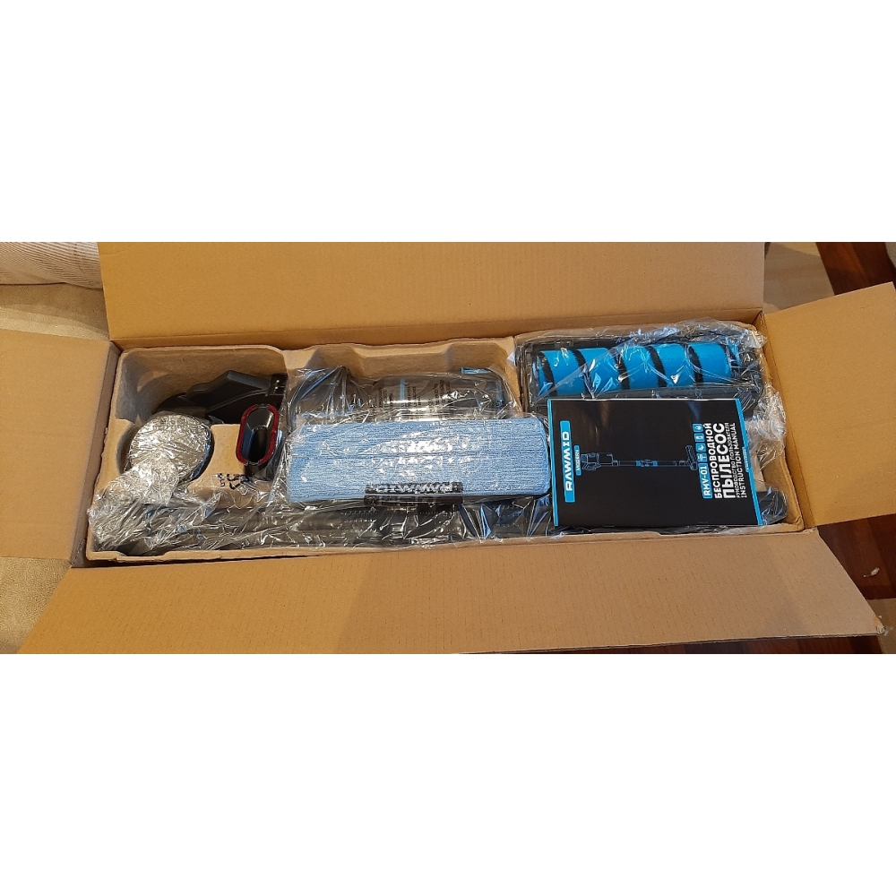Пылесос упакован в красивую фирменную коробку, а для безопасной перевозки всё упаковано в дополнительную транспортировочную коробку.