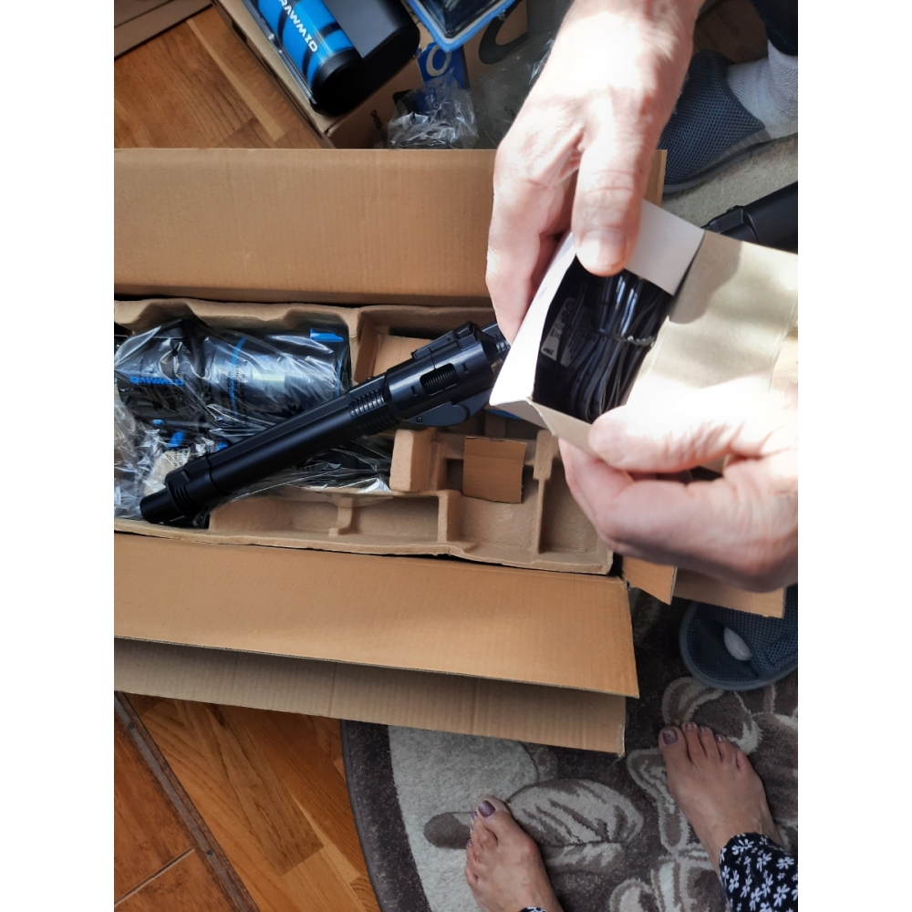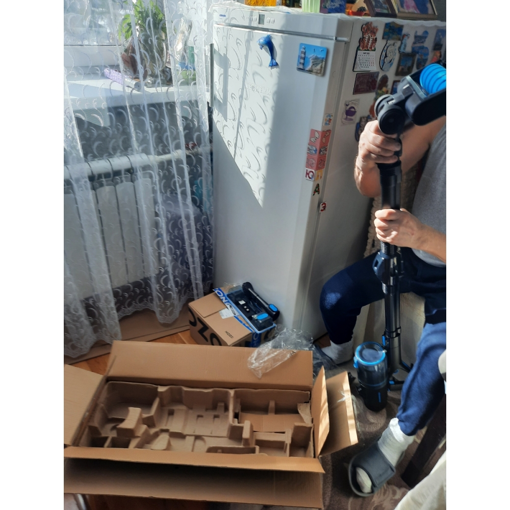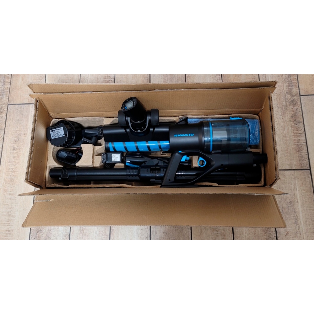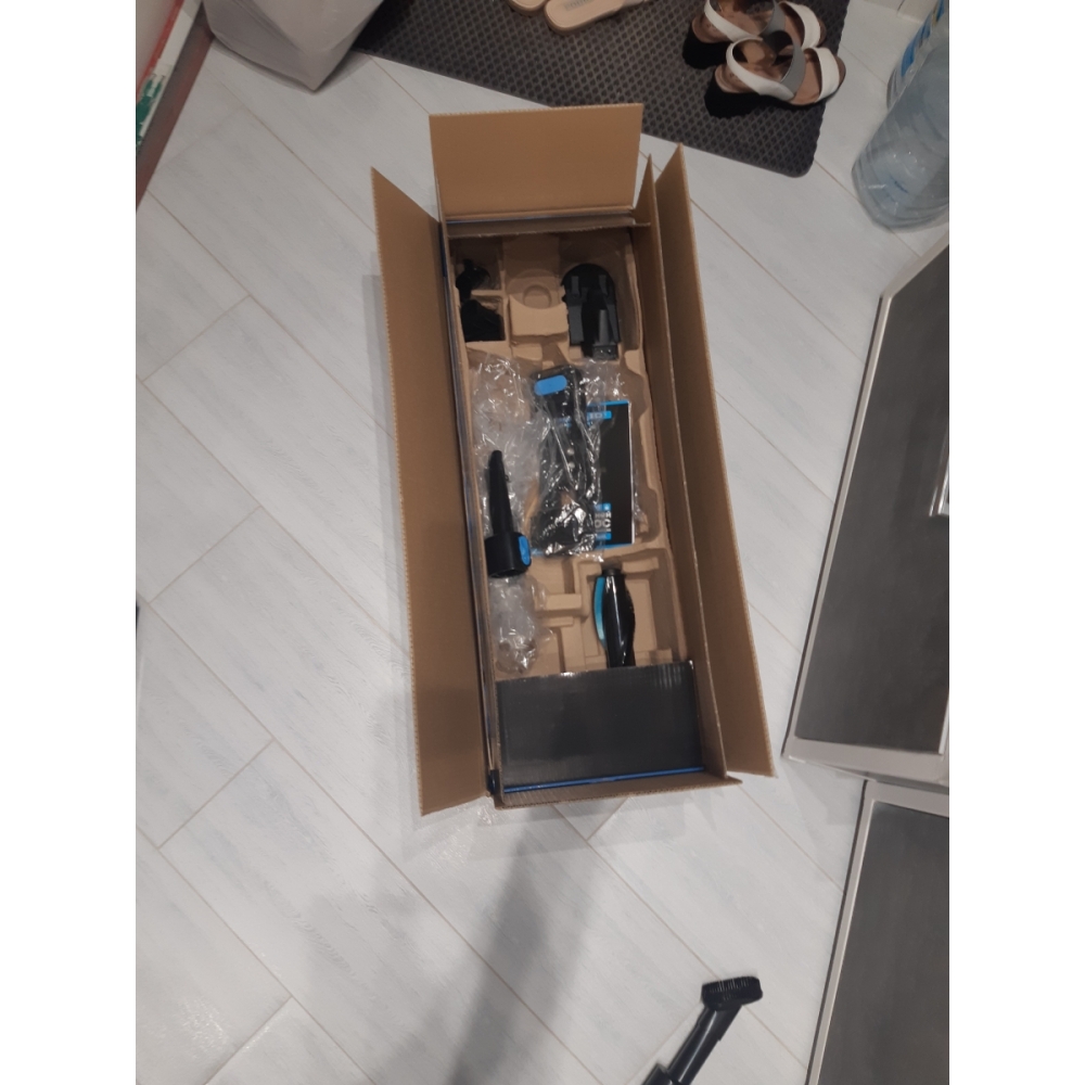 Пылесос упакован в красивую фирменную коробку, а для безопасной перевозки всё упаковано в дополнительную транспортировочную коробку.