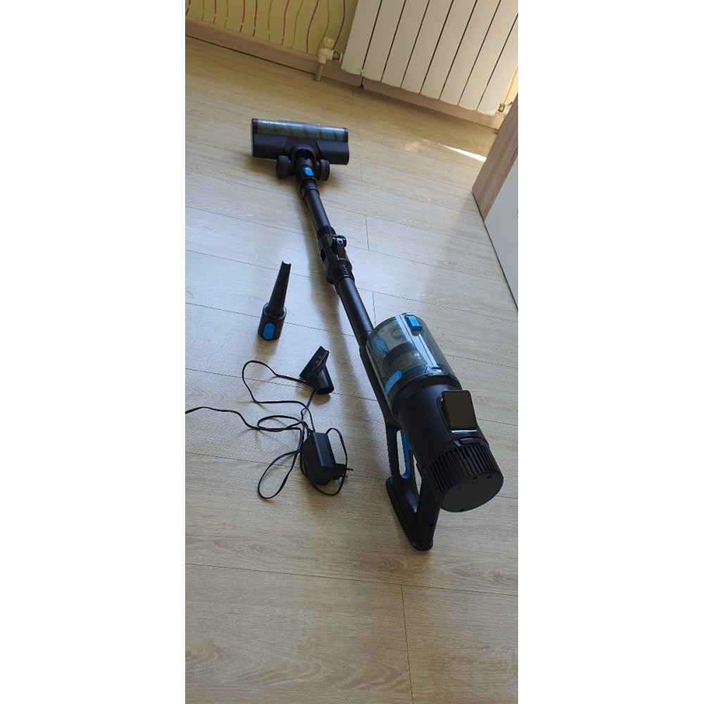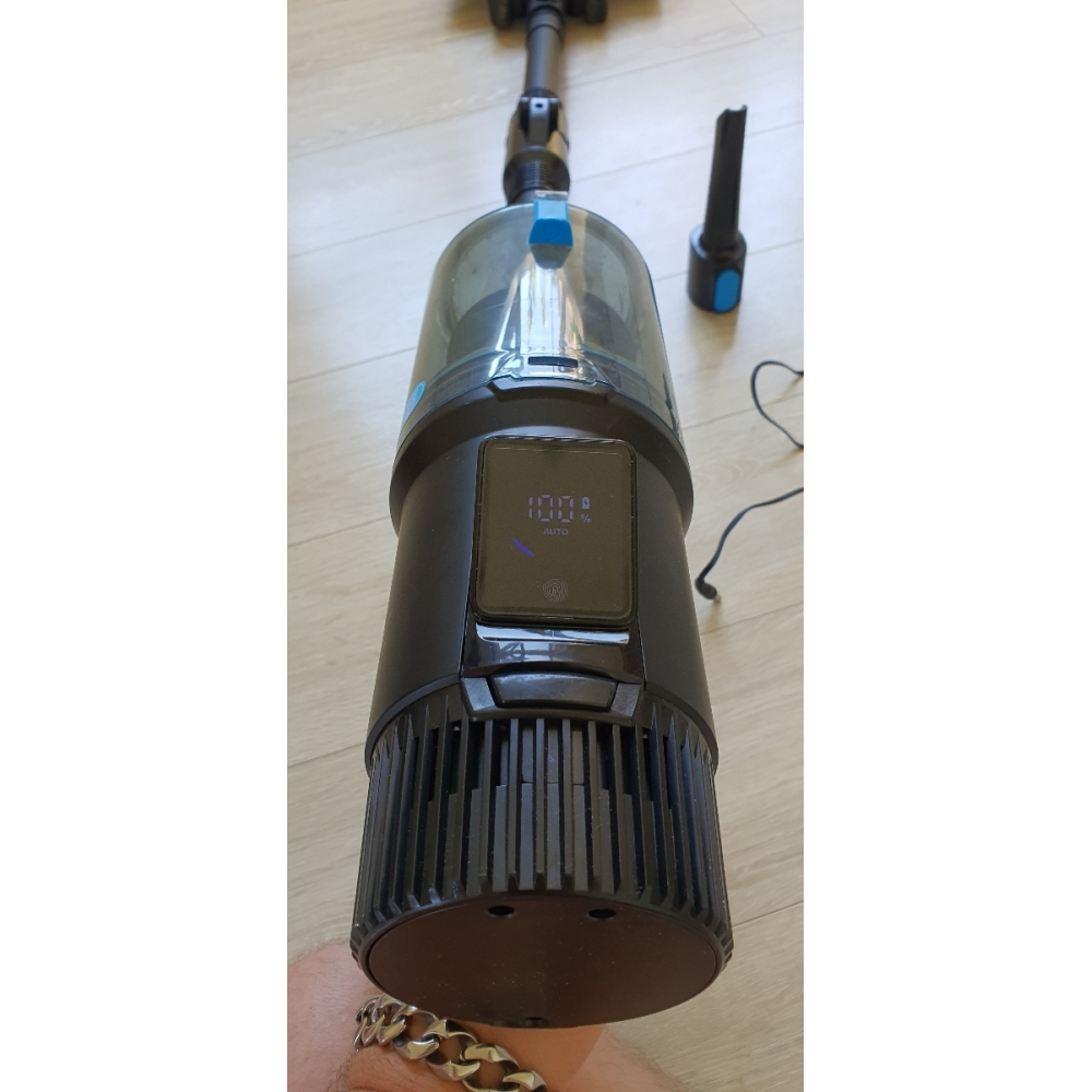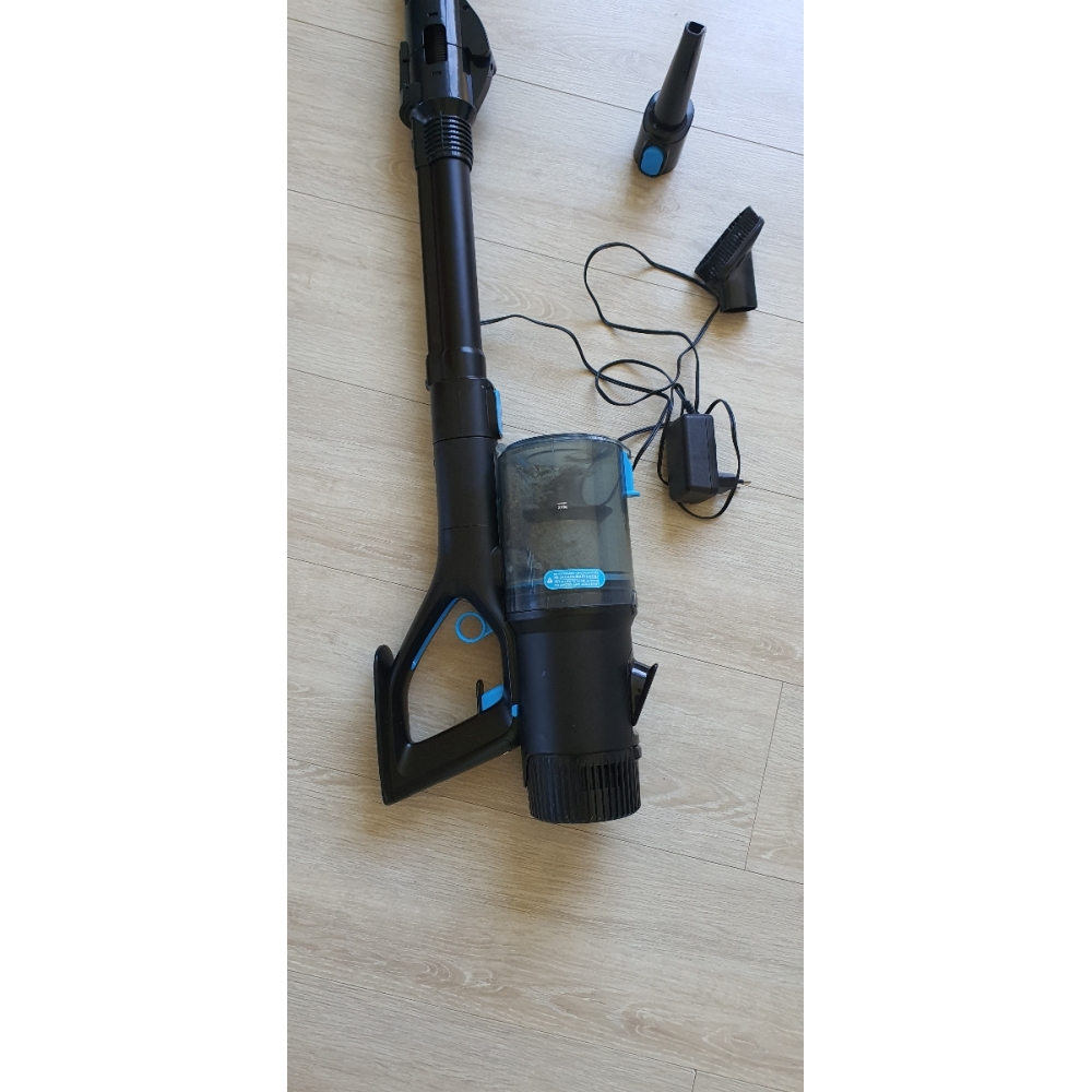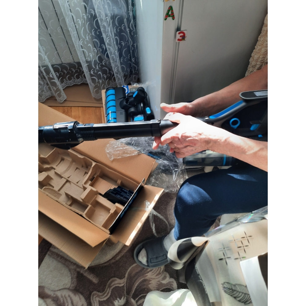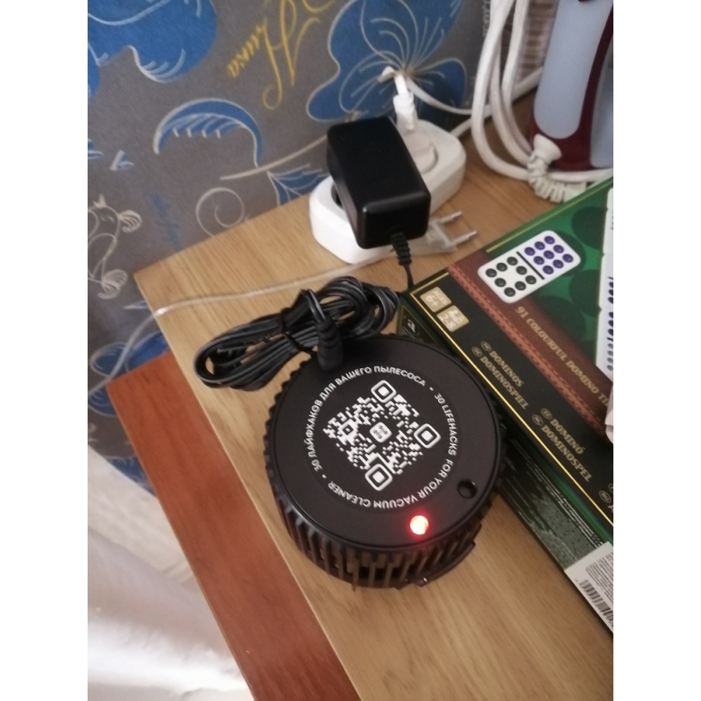 Зарядное устройство мощностью 23 Вт обеспечивает бережную зарядку аккумулятора в течение 4-5 часов. Благодаря бережной зарядке, снижается износ батареи и продлевается срок её службы. На аккумуляторе расположены два светодиода: когда идёт процесс зарядки, красный индикатор мигает, а когда батарея полностью заряжена — он горит непрерывно. Аккумулятор можно заряжать как установленным в пылесос, так и отдельно. Также Вы можете купить дополнительный запасной аккумулятор.