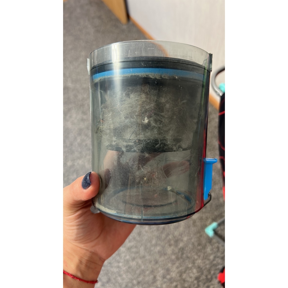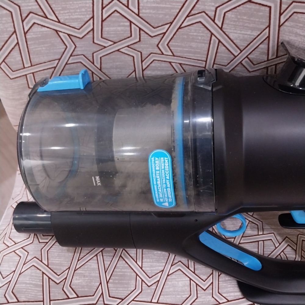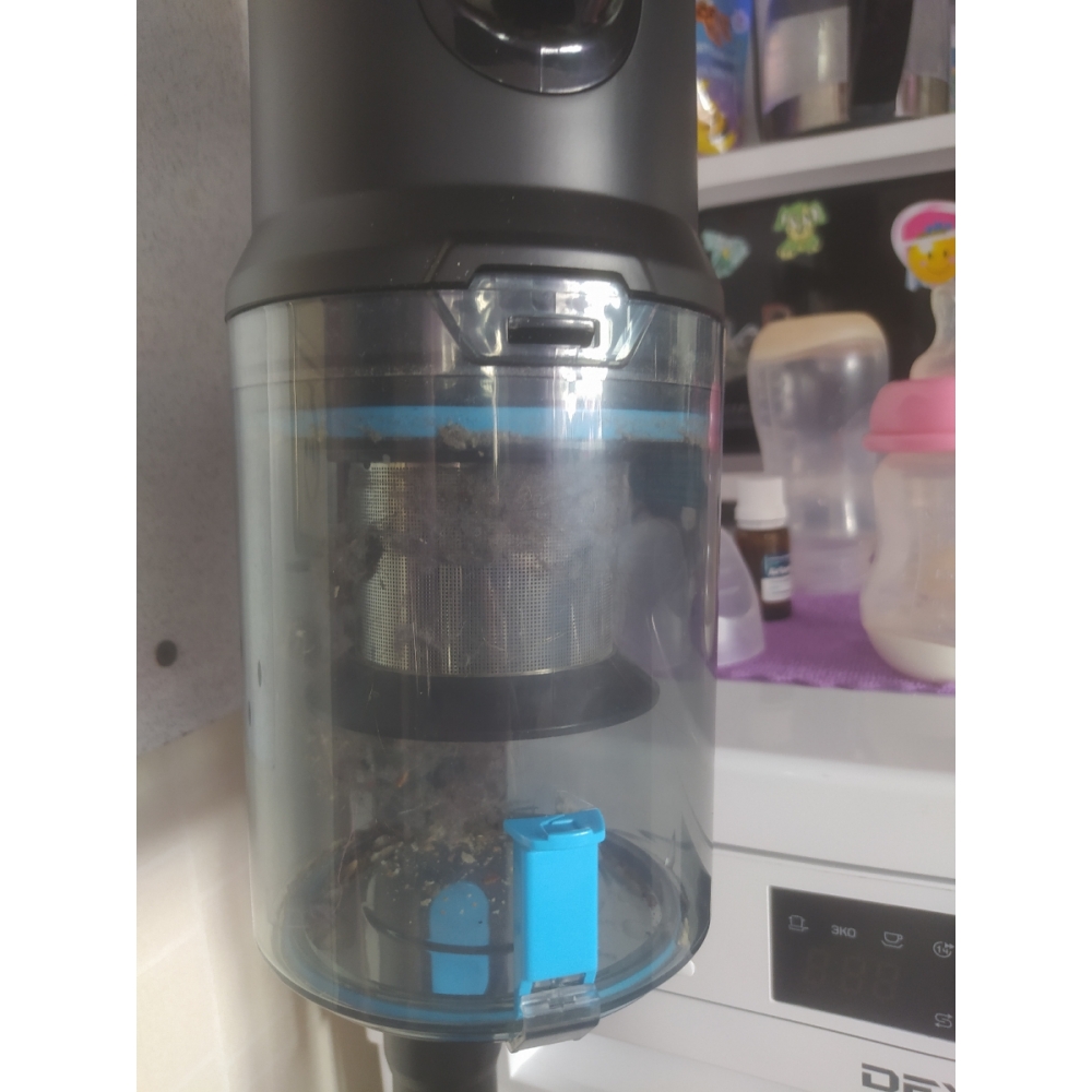 Очистить контейнер от пыли можно одним нажатием кнопки, не касаясь при этом мусора руками. Для более тщательной очистки контейнер можно легко снять и сполоснуть водой.