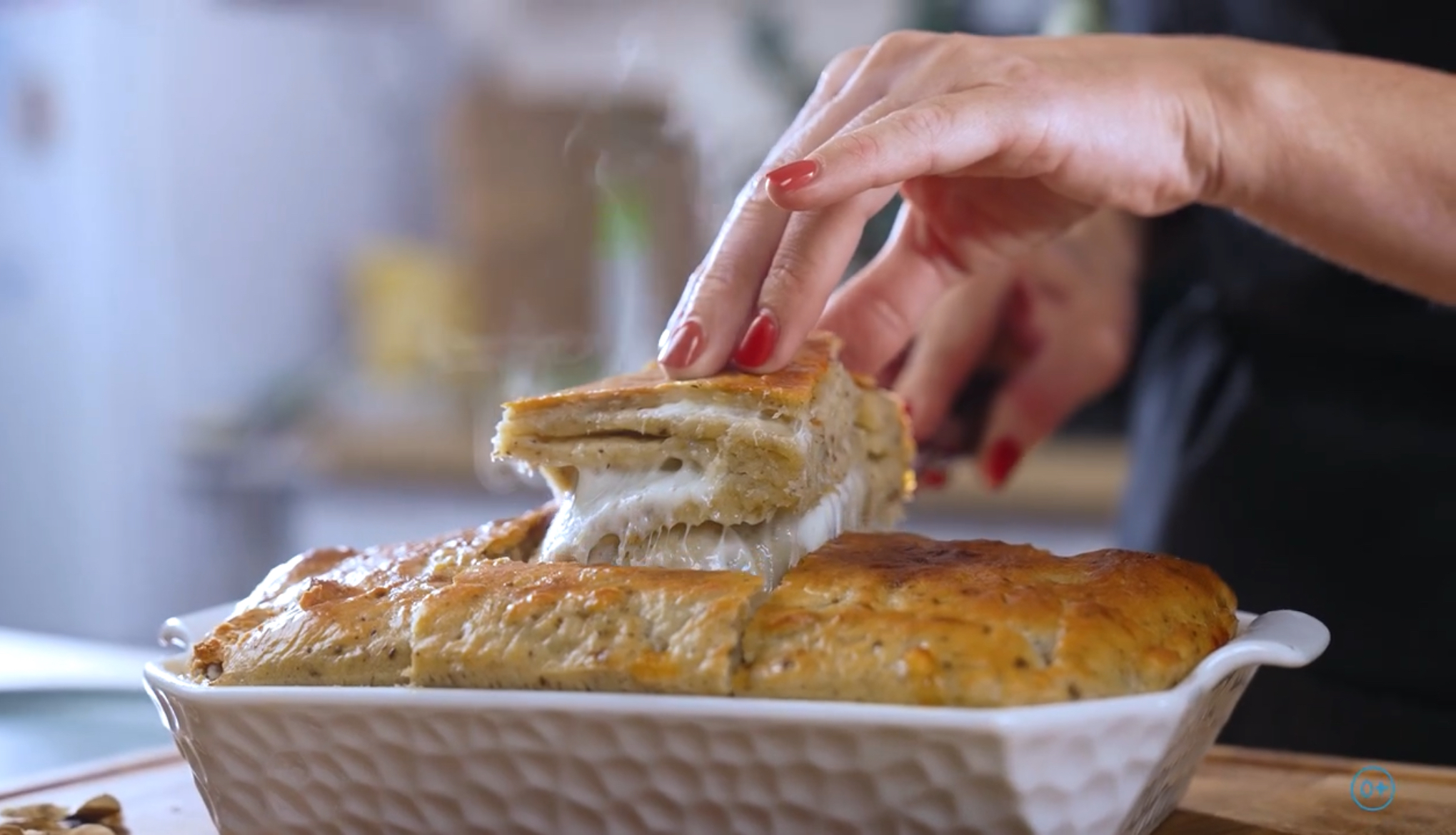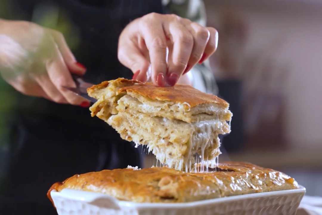 Ачма из лавашей с сыром сулугуни и шампиньонами — это сочная и нежная запеканка, приготовленная из тонкого лаваша, слоями заполненного ароматной грибной начинкой и тянущимся сулугуни. Это простое, но изысканное блюдо идеально подойдет для завтрака, перекуса или легкого ужина, радуя сочетанием насыщенного вкуса сыра и нежных грибов.