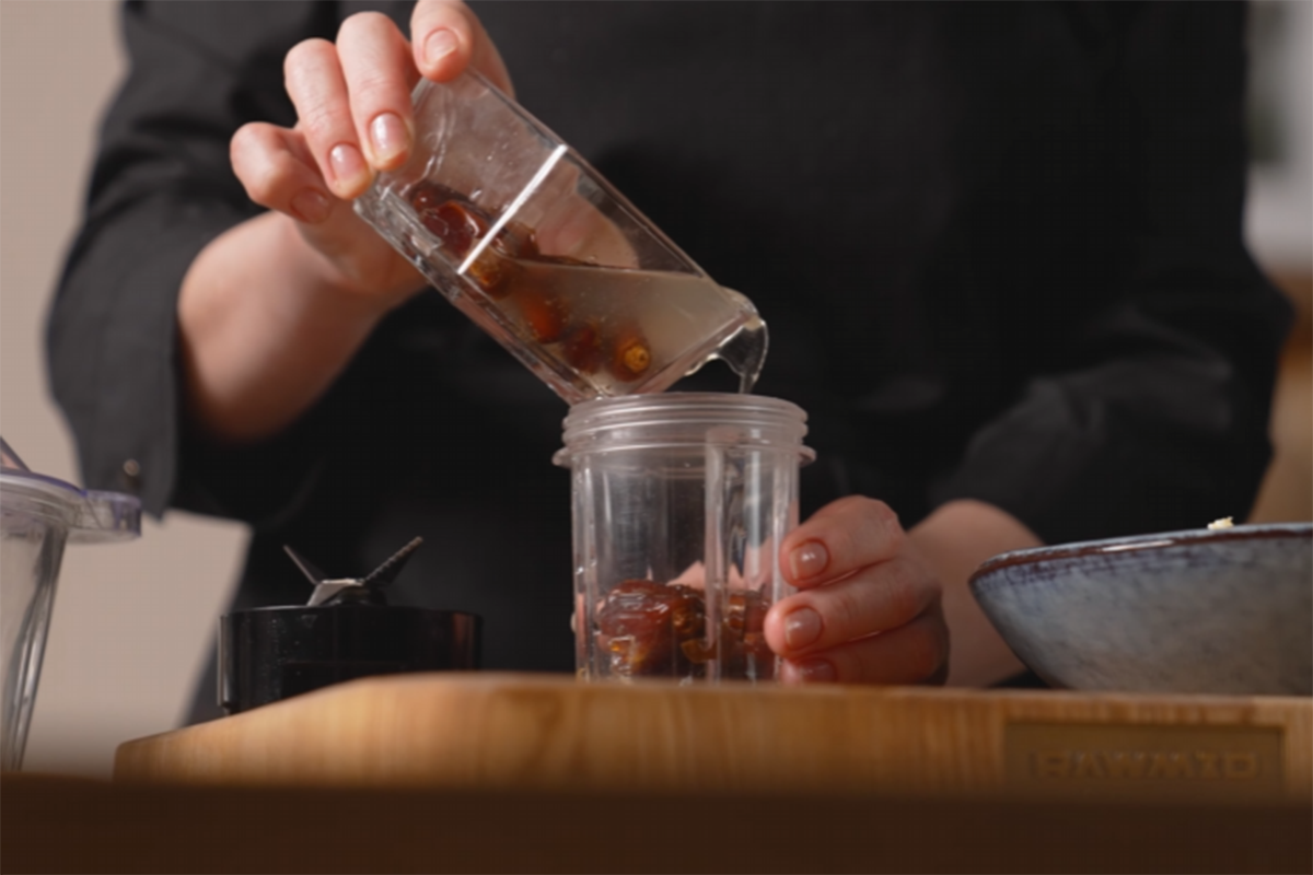 Финики залейте тёплой водой на 5 минут.