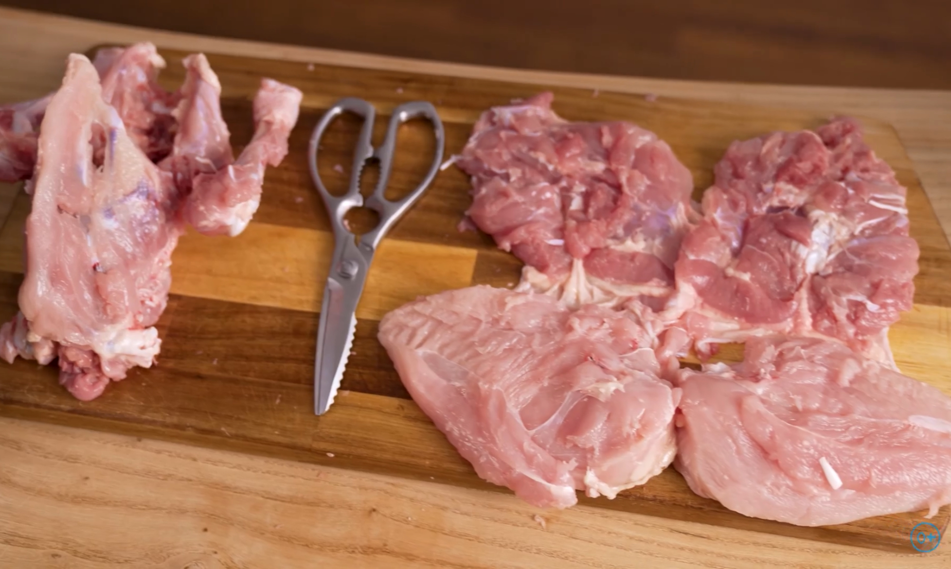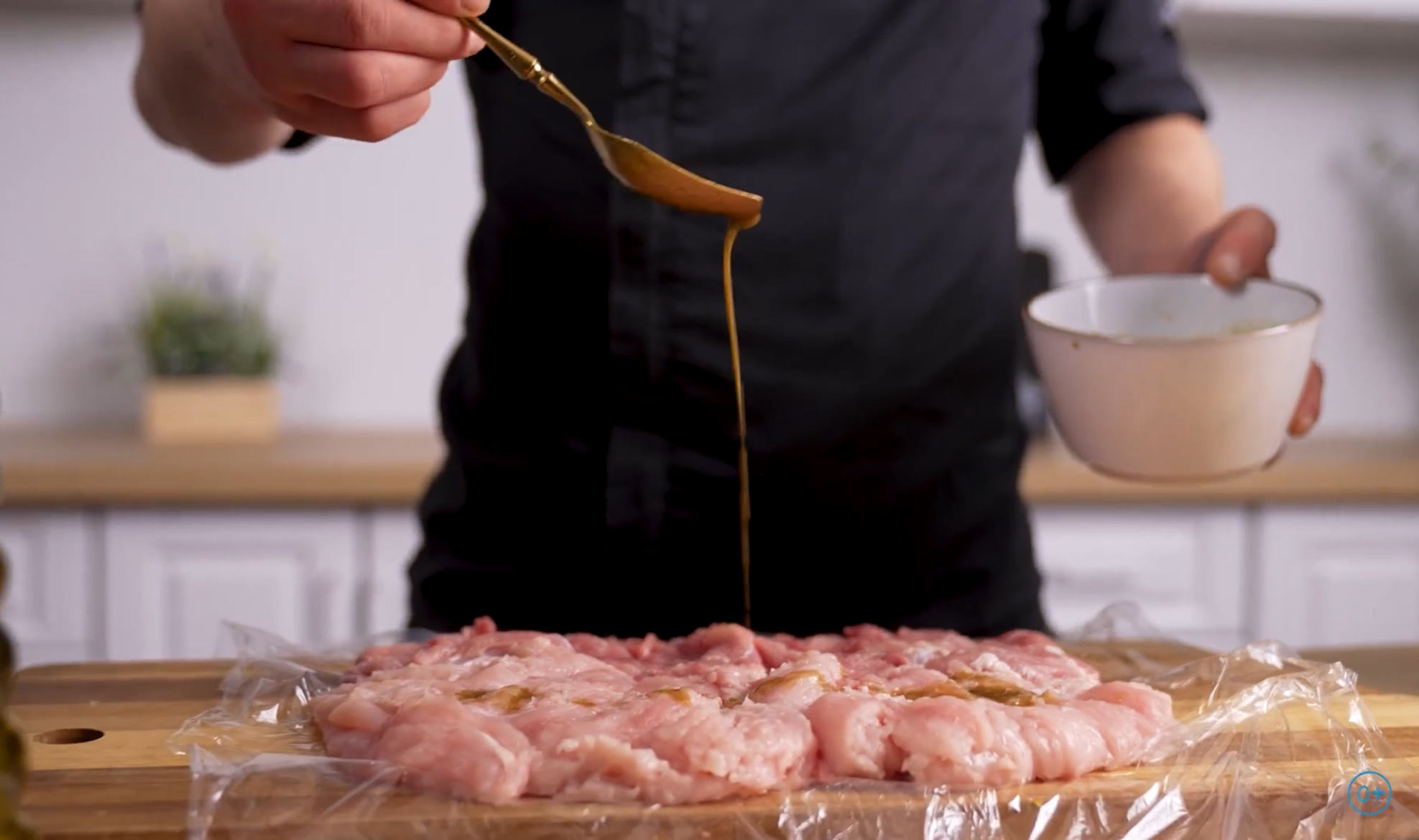 Снимите филе с тушки курицы, отбейте его, чтобы получить ровный слой.