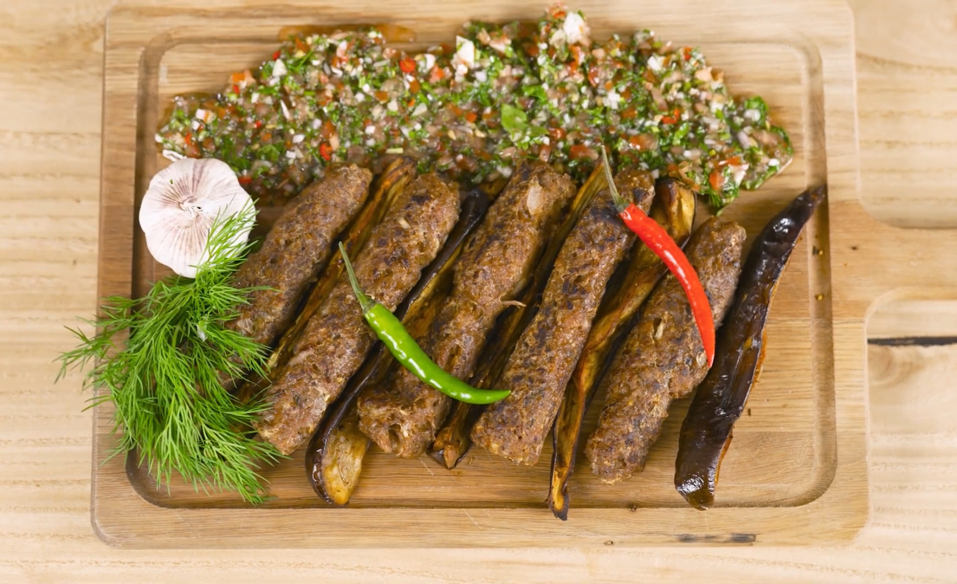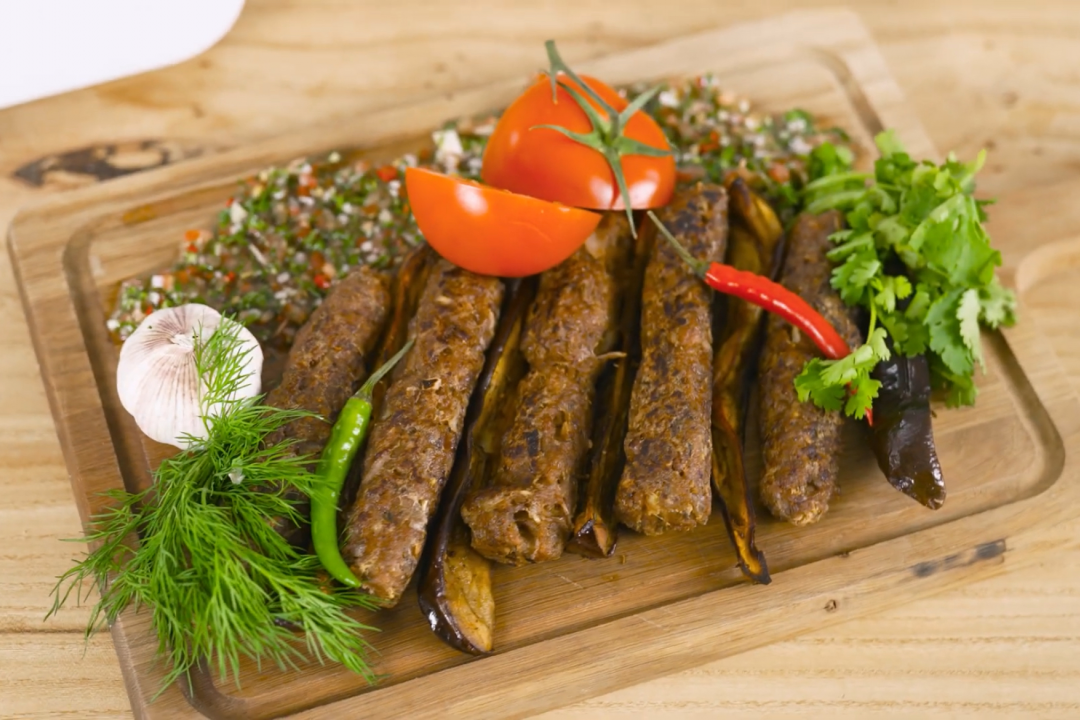 Люля-кебаб из баранины – это сочные, ароматные шашлычки из рубленого мяса, приготовленные на гриле. К ним подаётся пикантный соус из спелых томатов, кинзы, лука-шалот и перца чили, придающий блюду свежесть и остроту. В качестве гарнира запекаются баклажаны, маринованные в оливковом масле, уксусе, мёде и специях, которые пропитываются мясным соком во время готовки. Блюдо получается насыщенным, сбалансированным по вкусу и идеально подходит для летних вечеров на открытом воздухе.