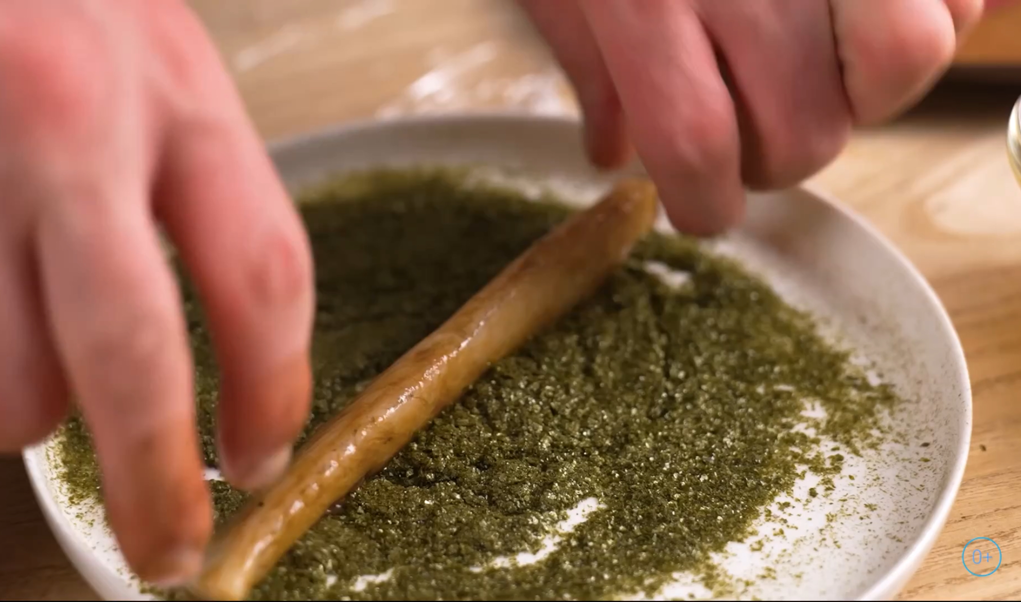 2. Запанируйте их в пудре из водорослей нори, предварительно обмокнув в соевом соусе.