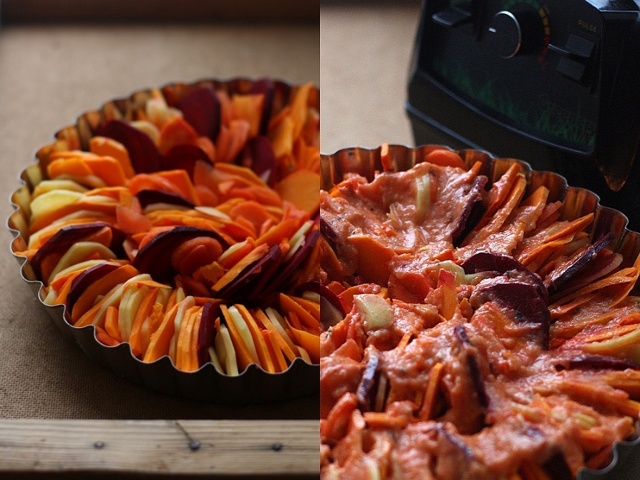 Рататуй -  традиционное блюдо прованской кухни, полюбившееся всему миру благодаря диснеевскому мультфильму. Мы предлагаем вам приготовить не классический вариант из осенне-зимних овощей. Этот вариант не менее вкусен. А главным залогом вкусного и удачного рататуя, является хороший соус, который мы приготовим в блендере.