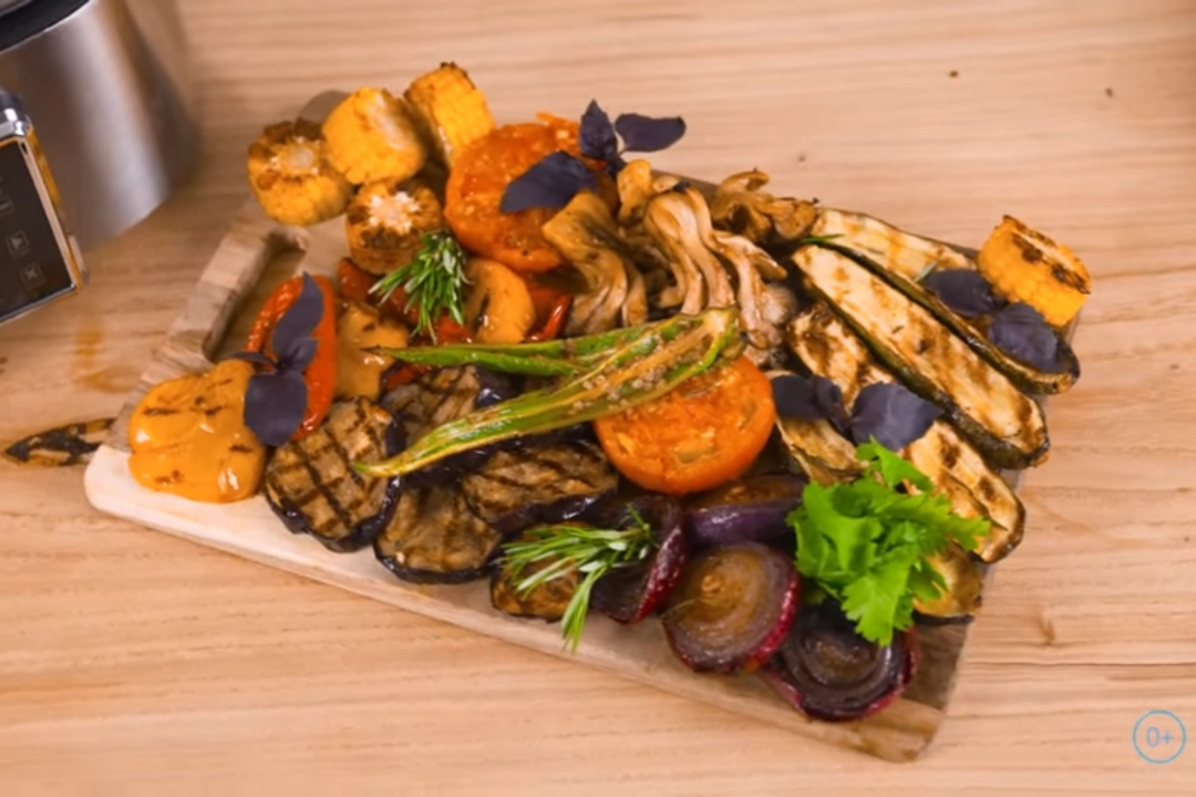 Ассорти из овощей на гриле с йогуртовым соусом — это легкое, ароматное и красочное блюдо, идеально подходящее для вегетарианского ужина. Овощи маринуются в смеси оливкового масла, бальзамического уксуса, чеснока и специй, а затем обжариваются до золотистой корочки. Подается с нежным соусом на основе греческого йогурта, придающим блюду изысканный вкус.