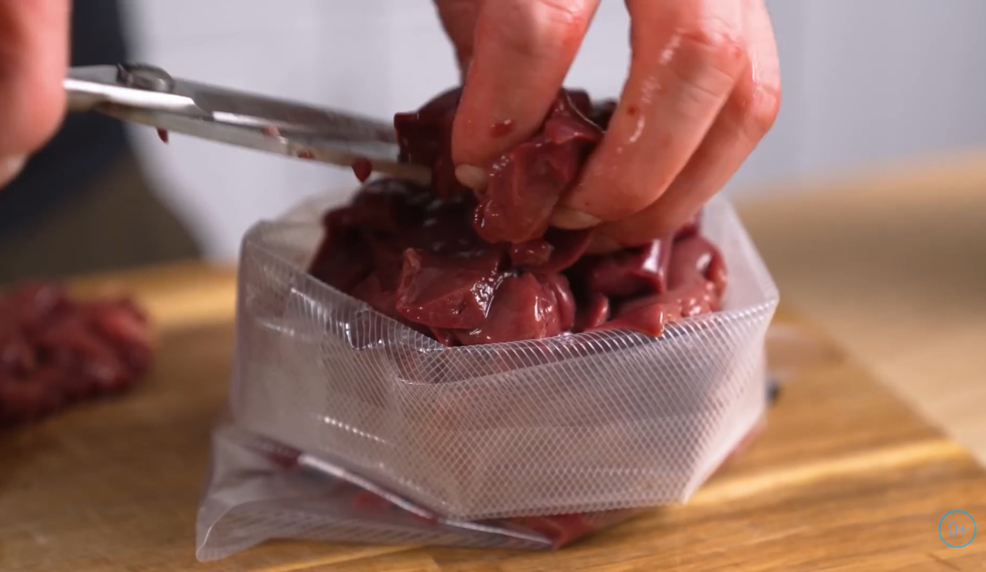 Зачистите печень, нарежьте кусочками, поместите в вакуумный пакет.