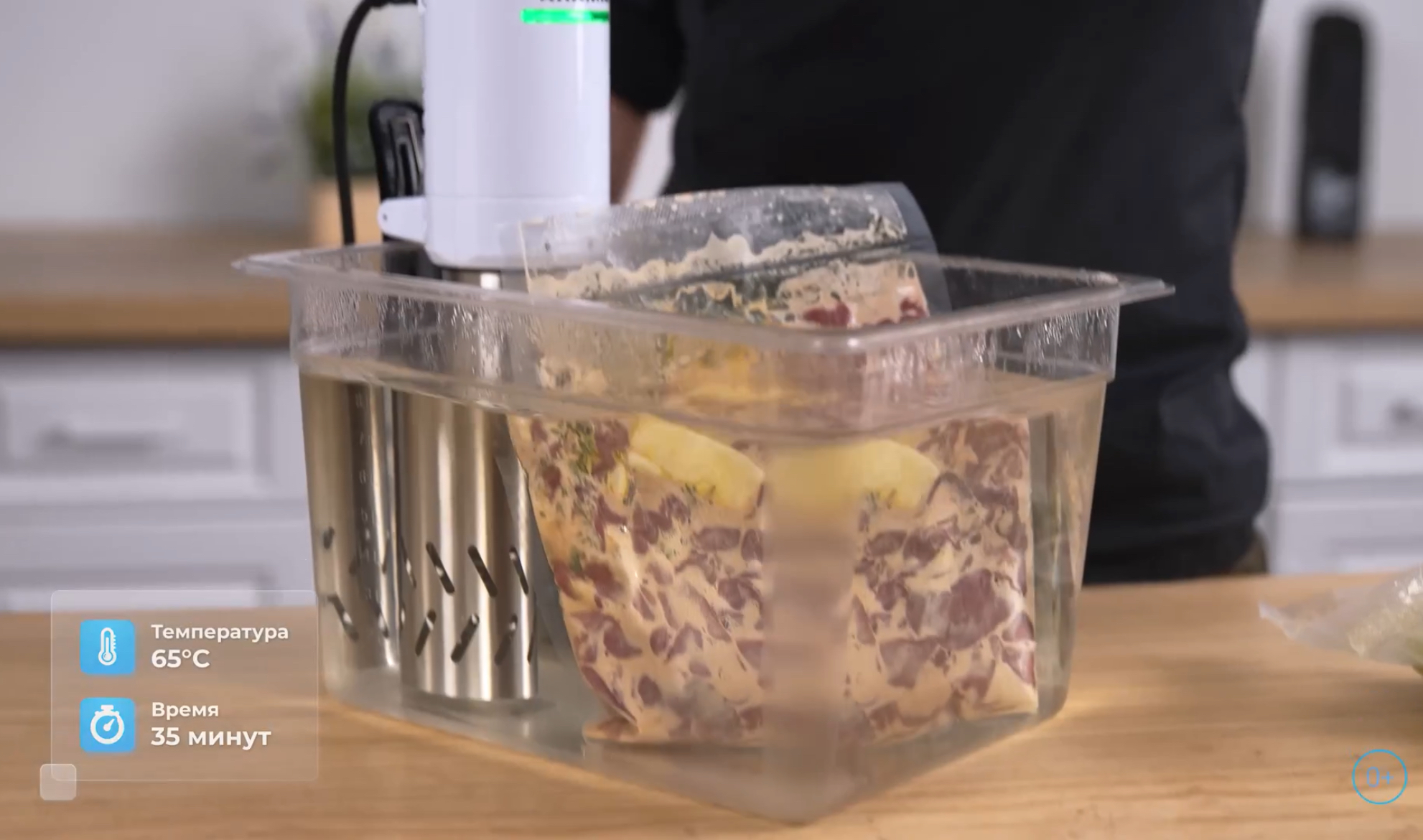 2. Вакуумируйте и готовьте су-вид при 65°C 35 минут.