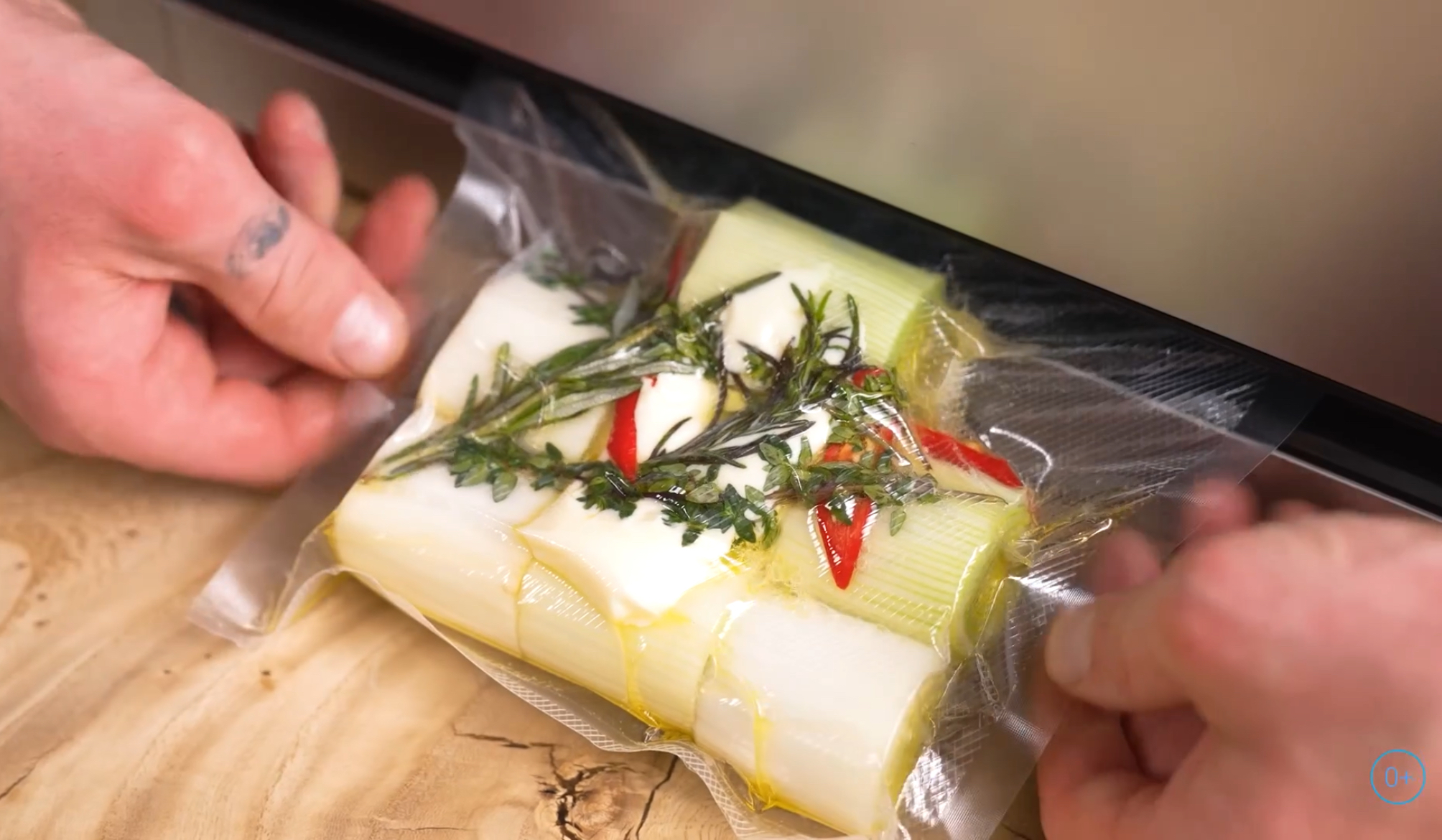 2. Готовьте лук-порей су-вид 35 минут при 65°C.