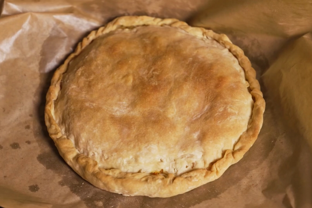 1. Смажьте верх пирога маслом или чайной заваркой для румяной корочки.