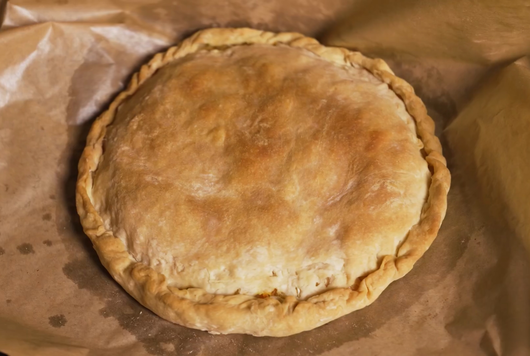 3. Распределите начинку и накройте верхним слоем теста, защипнув края.