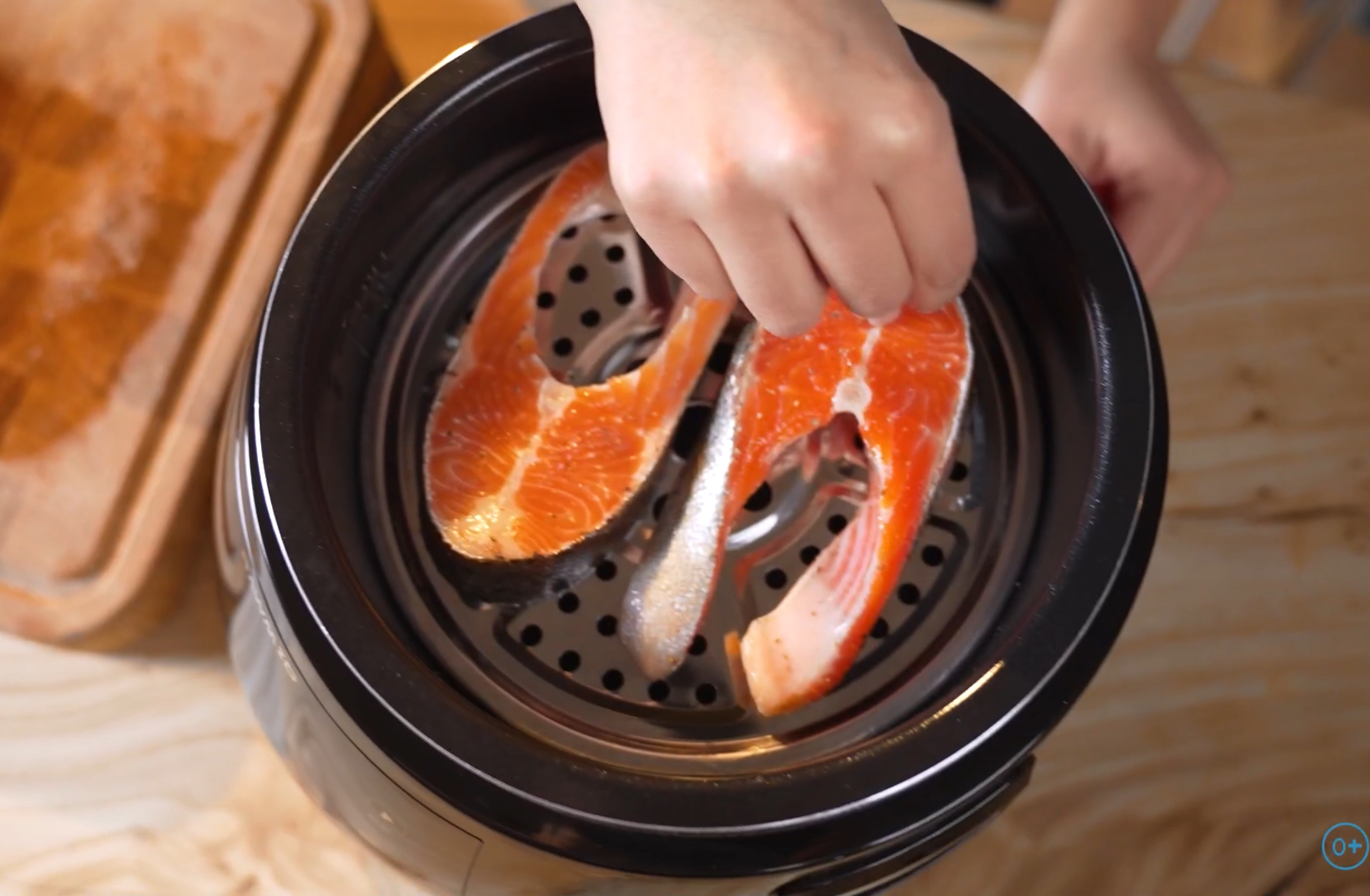 3. Выложите рыбу и овощи на сетку, закройте крышку мультиварки.