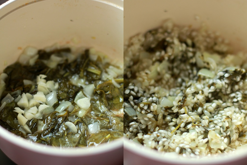2. Лук при жарке, можно сказать, тушат. Нужно довести его до мягкости, но не в коем случае нельзя доводить до золотистого состояния. В некоторых источниках пишут, что ризотто варят именно 17 минут, но это условное время. Так как у каждого повара своя сковорода, степень интенсивности огня и количество ингредиентов, поэтому готовность определяется не временем, а на вкус, об этом чуть ниже.