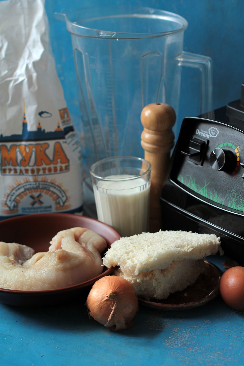 1. Подготовим все ингредиенты. Рыбу очистим от косточек, порежем на крупные куски. Лук мелко очистим от шелухи, порубим. Батон замочим в молоке. В данном рецепте вы можете использовать любую рыбу по вашему вкусу, главное выбирайте рыбу с наименьшим количеством костей.