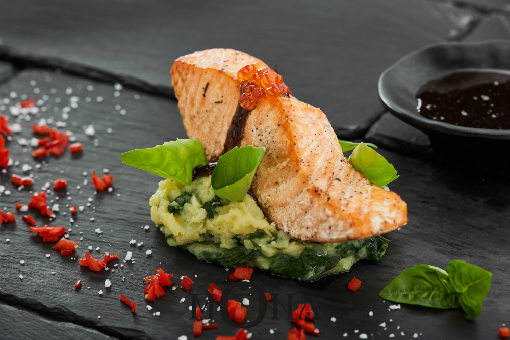 1. Сочный лосось под перечно-сырным соусом (по технологии сувид)