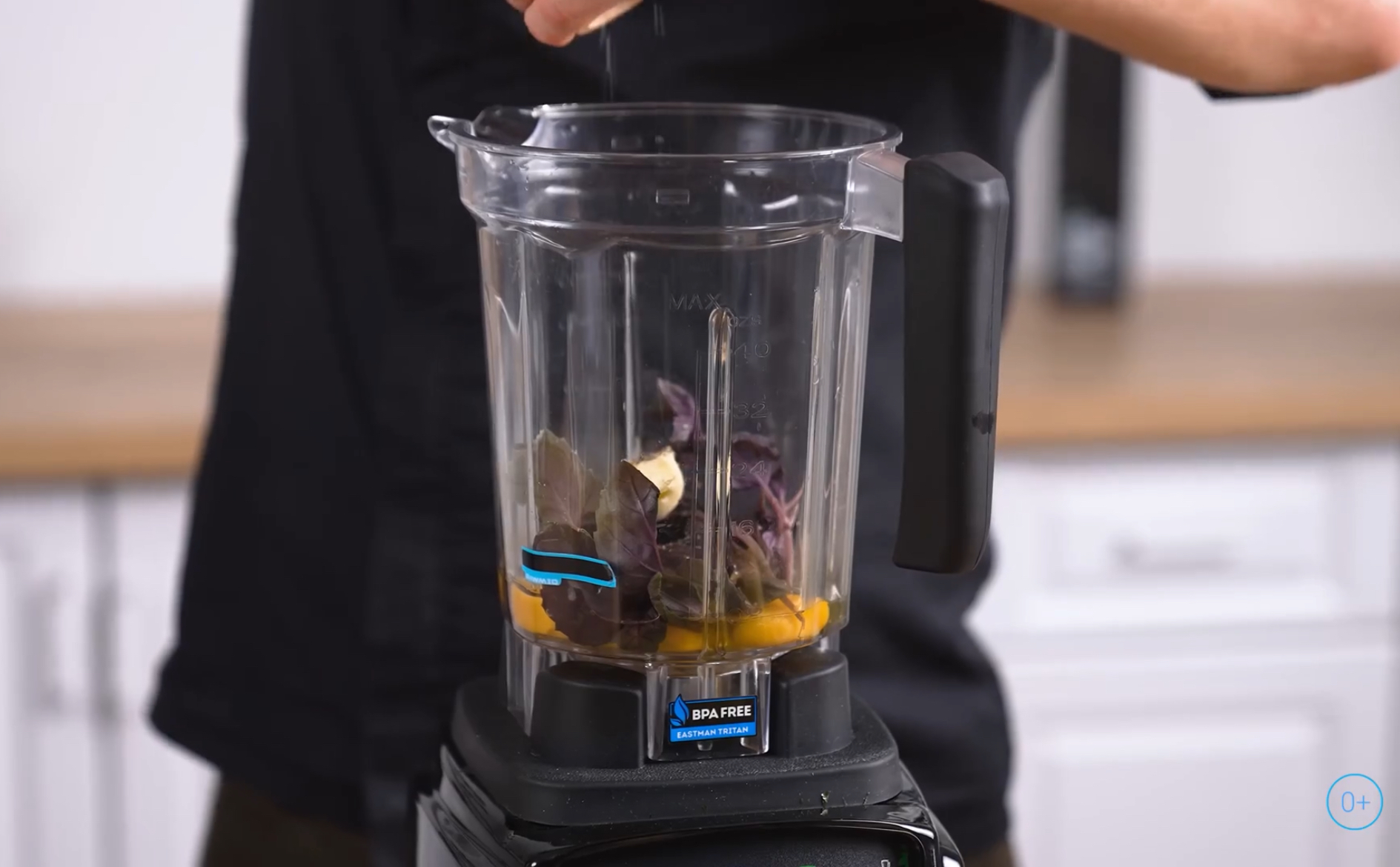 1. В блендере пробейте сырые яйца, базилик, соль и перец.