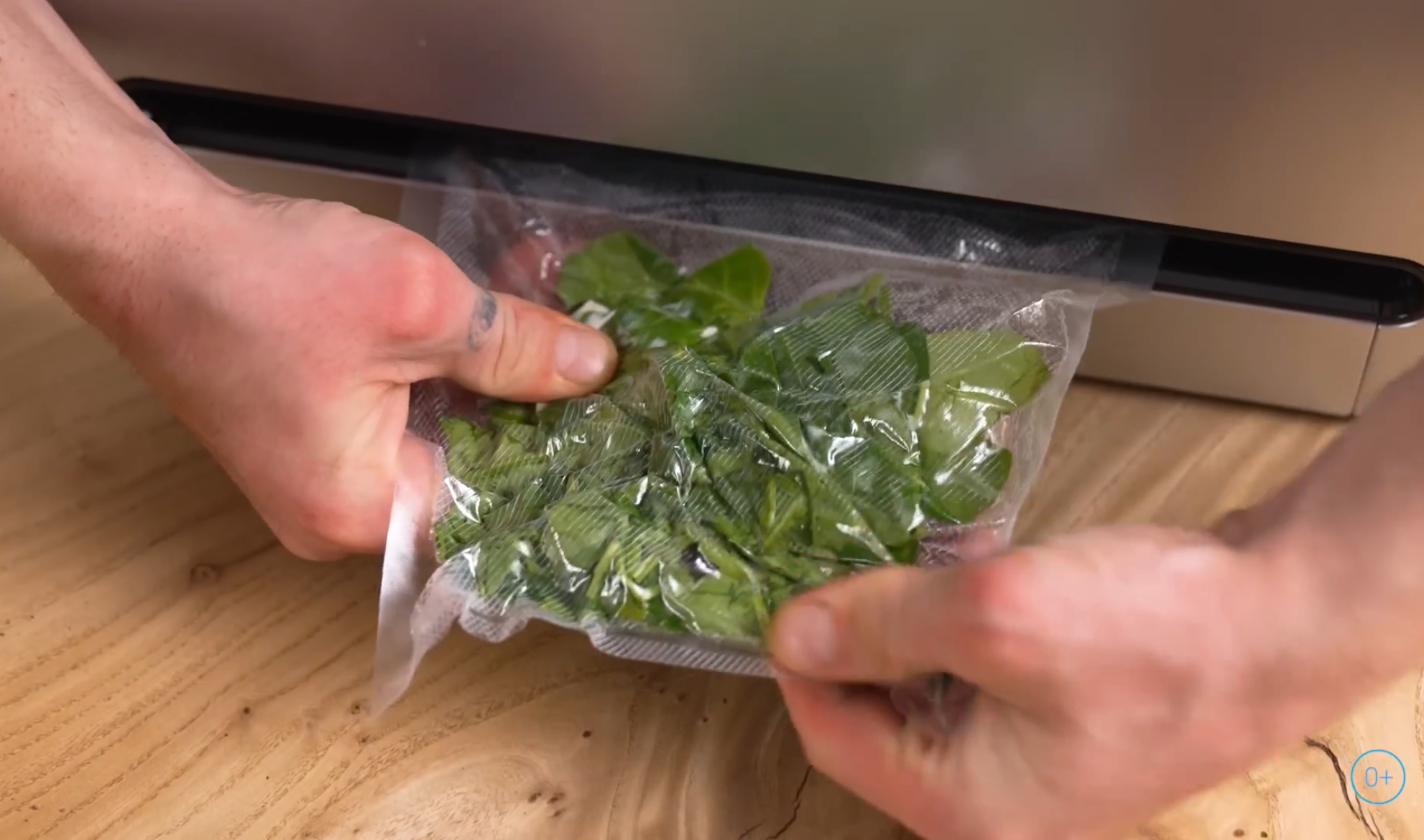 2. В шпинат добавьте сливочное масло, белое вино, готовьте су-вид 10 минут при 55°C.
