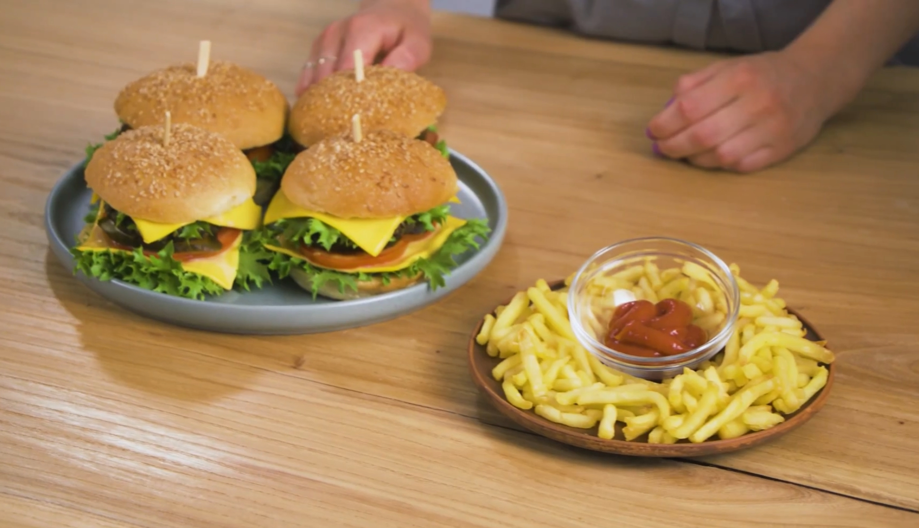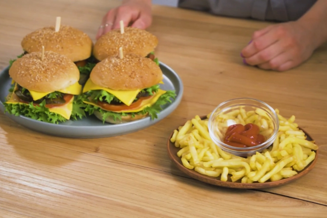 Это блюдо представляет собой домашние бургеры, которые можно приготовить в двух версиях: веганской и вегетарианской. Основой являются воздушные булочки, приготовленные с помощью режима "гриль+пар" в мультипечи, и котлеты из растительных смесей. К блюду подается соус из постного майонеза с добавлением горчицы и специй, а также картофель фри, приготовленный в режиме аэрофритюра. Простое и универсальное блюдо, которое легко адаптировать под свои вкусы.